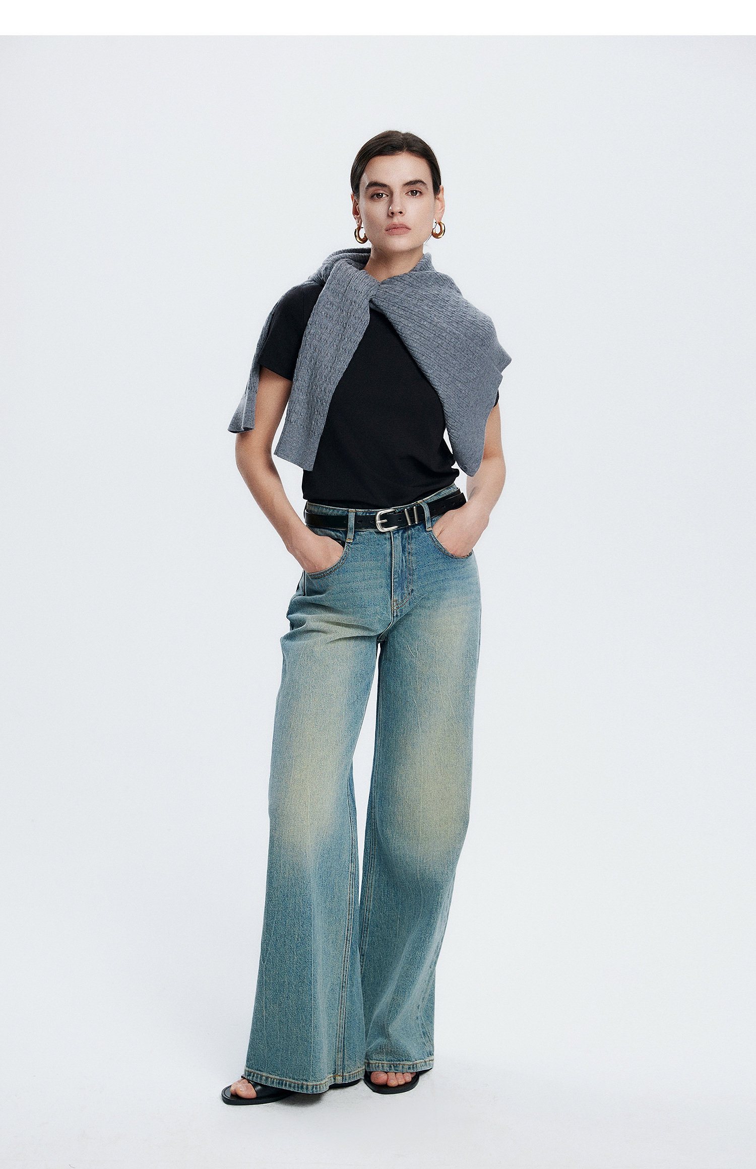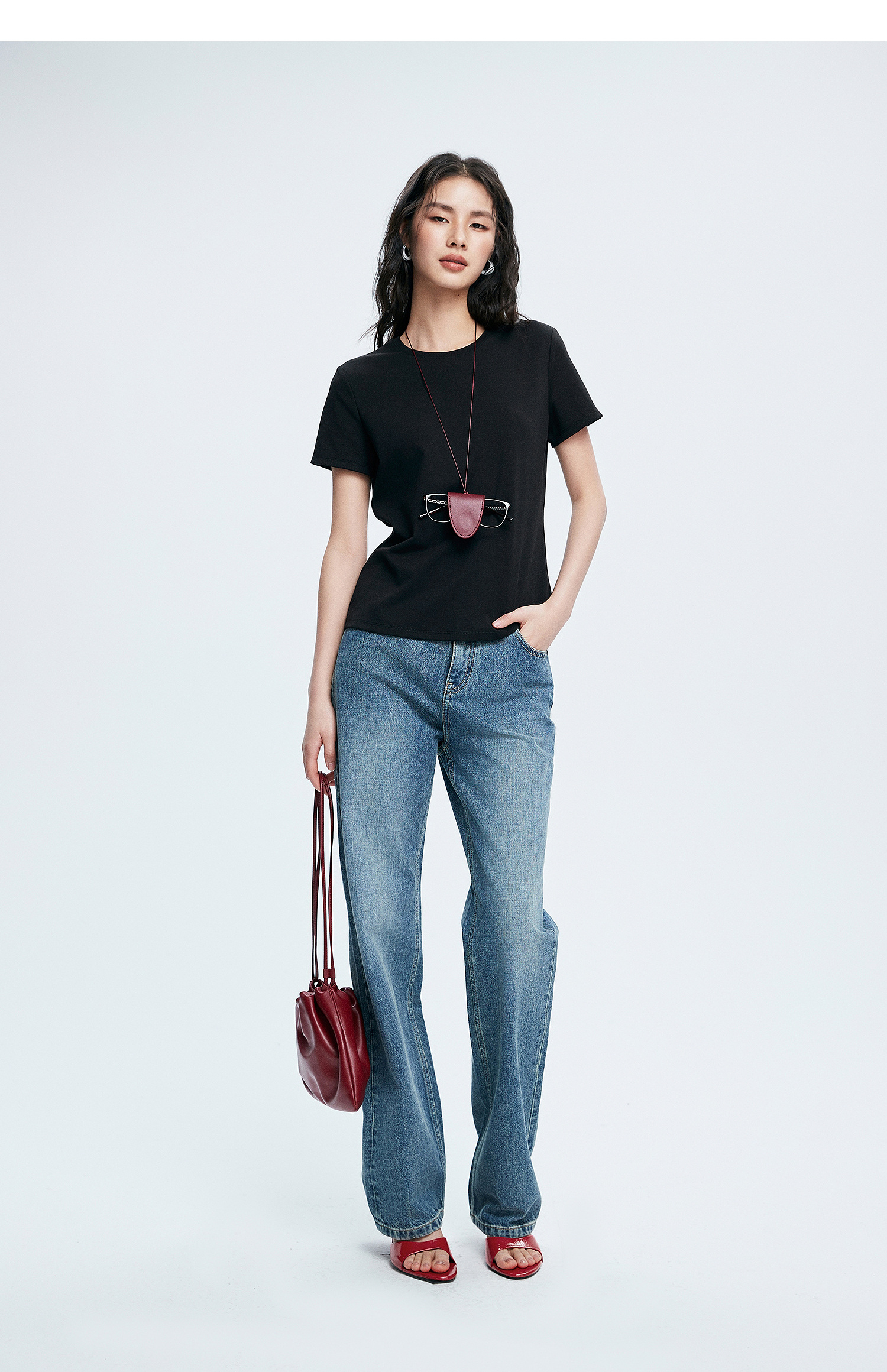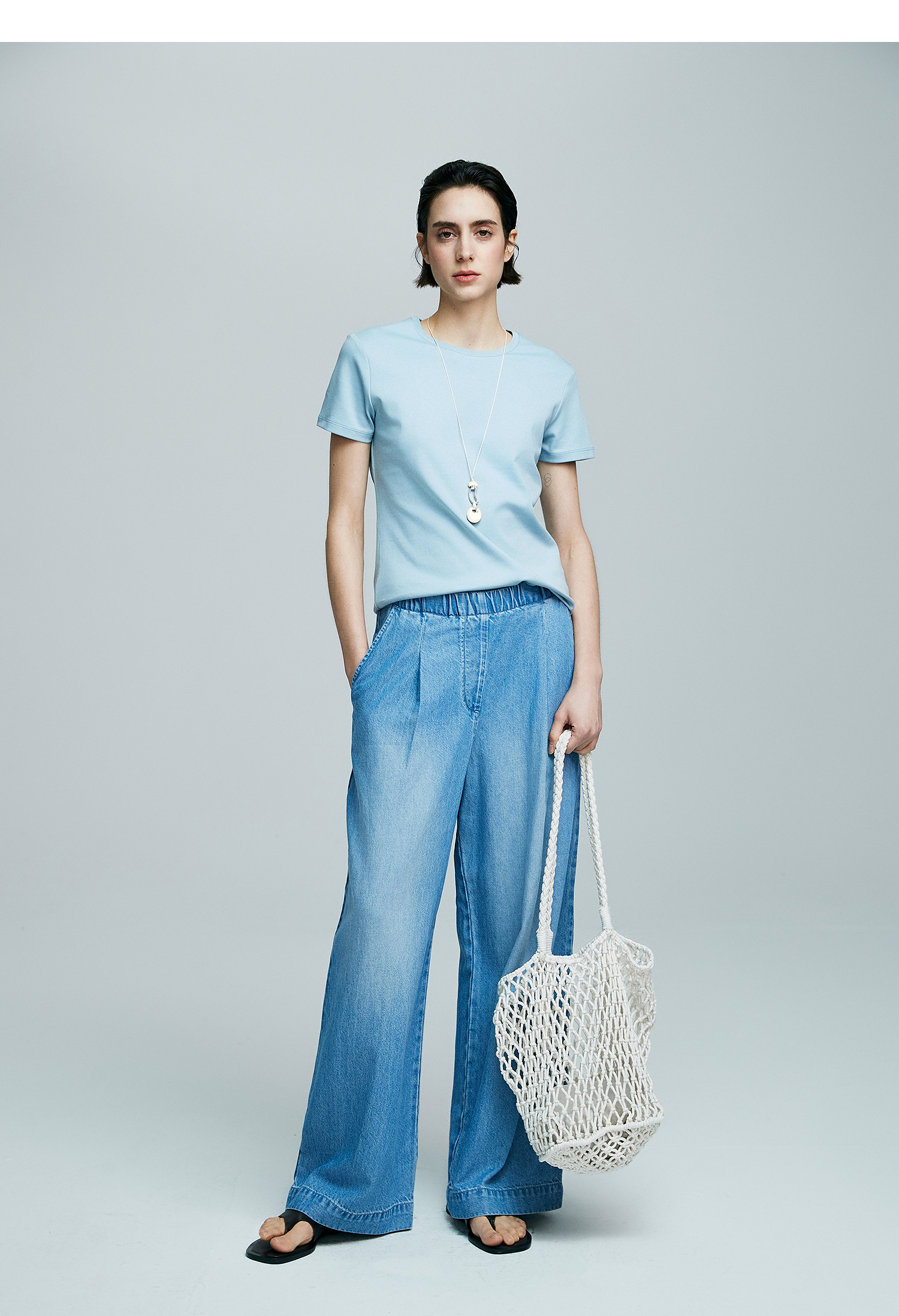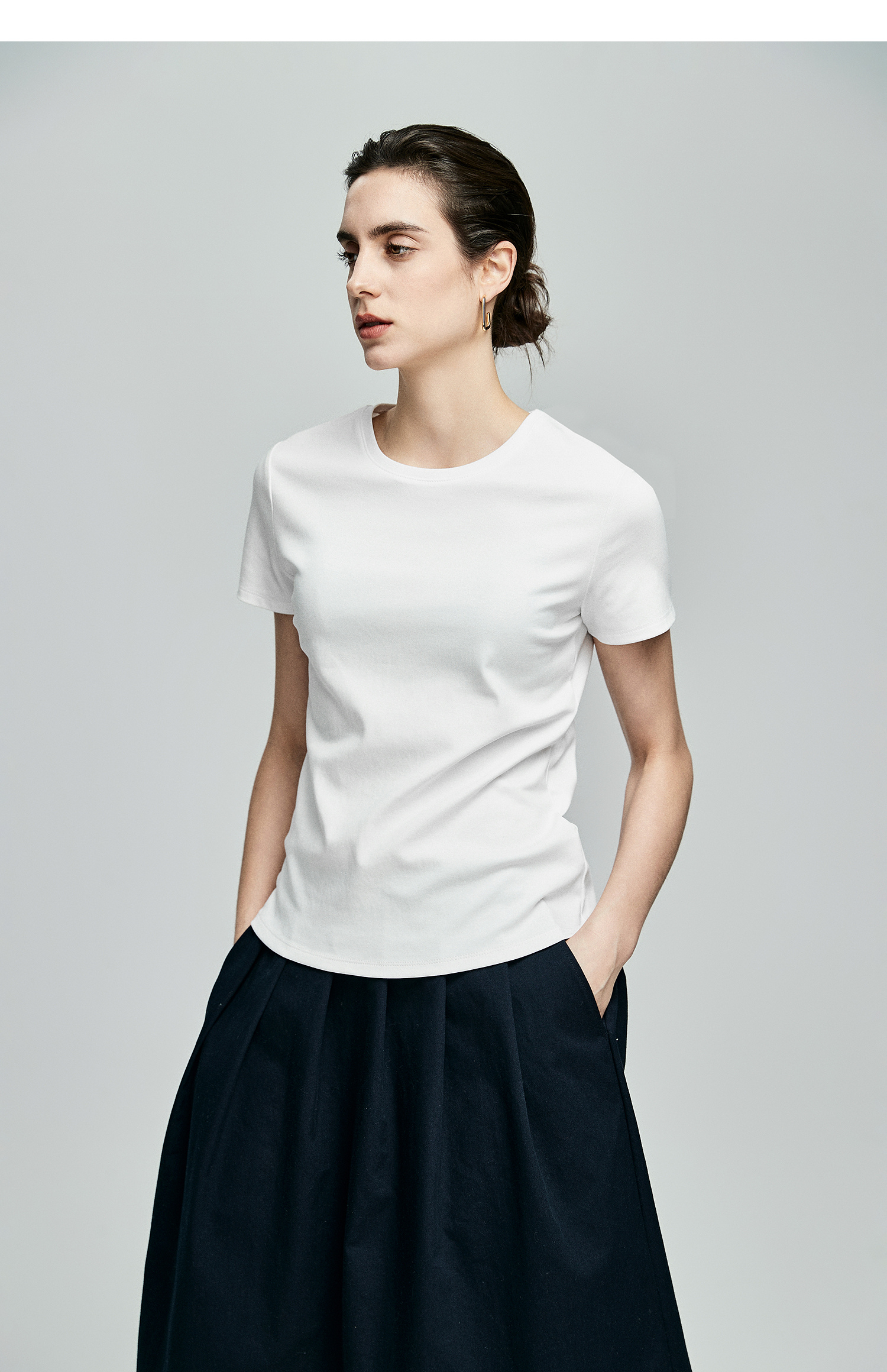 初棉正肩短袖T恤女后背花针设计362601002
