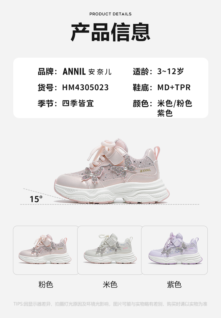 ANNIL/安奈儿童鞋春季时尚百搭秋季软底透气儿童休闲中大童运动鞋HM4305023