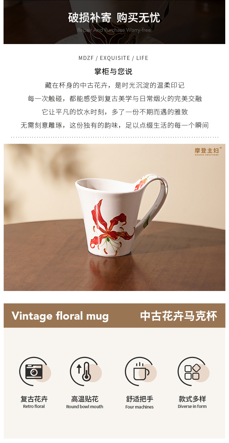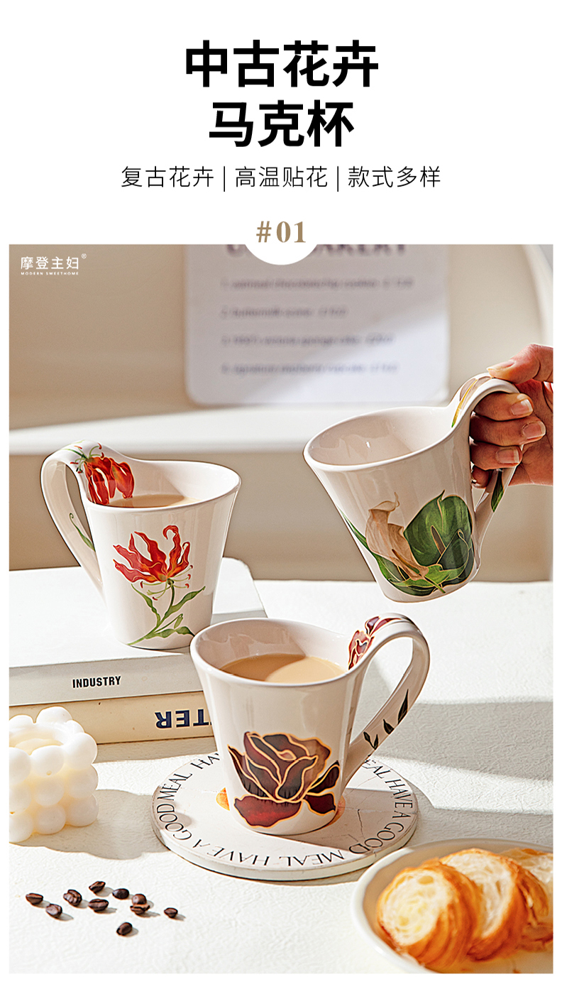 摩登主妇陶瓷马克杯高级感轻奢生日礼物高颜值家用喝水杯咖啡杯子
