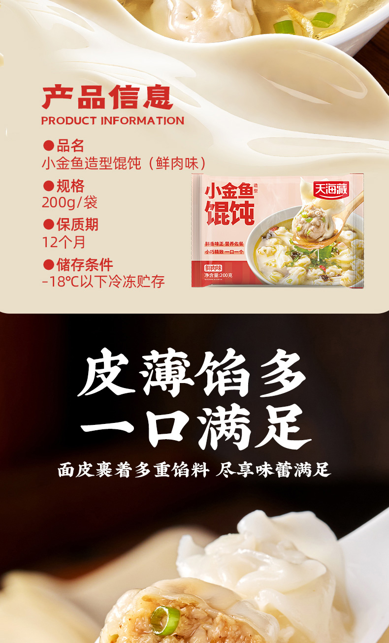粉丝专属【秒杀❗️49.9到手🔥小金鱼馄饨200g/袋】采用传统工艺精制做而成,轻薄外皮包裹饱满肉馅,口口超满足,营养早餐半成品冷冻速食,面食煎饺蒸饺早餐食品L-d