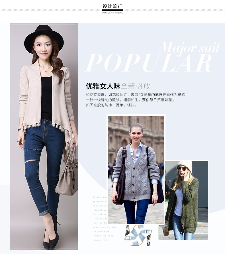 FCY-MG1-80秋季欧美流苏宽松针织衫