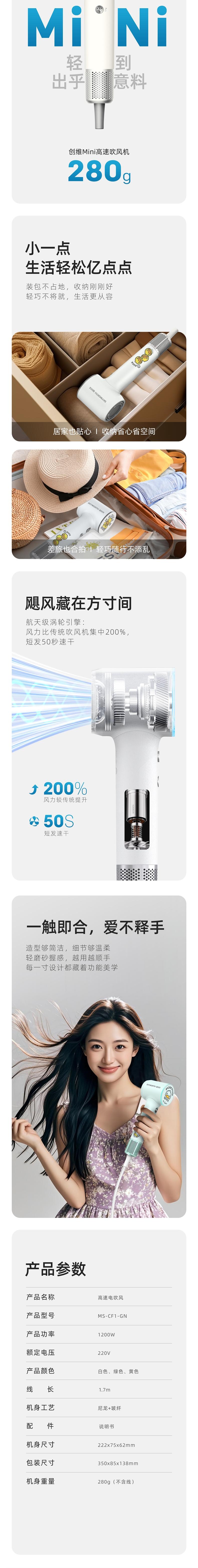 创维 MINI高速吹风机(小黄鸭联名版)222*75*62mm MS-CF1-GN
