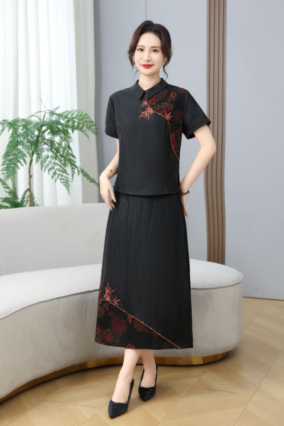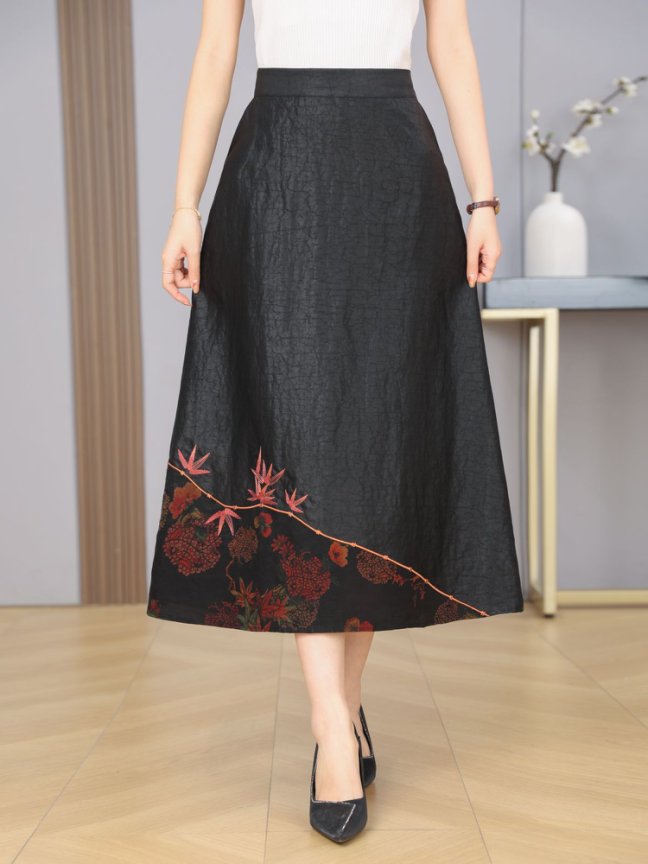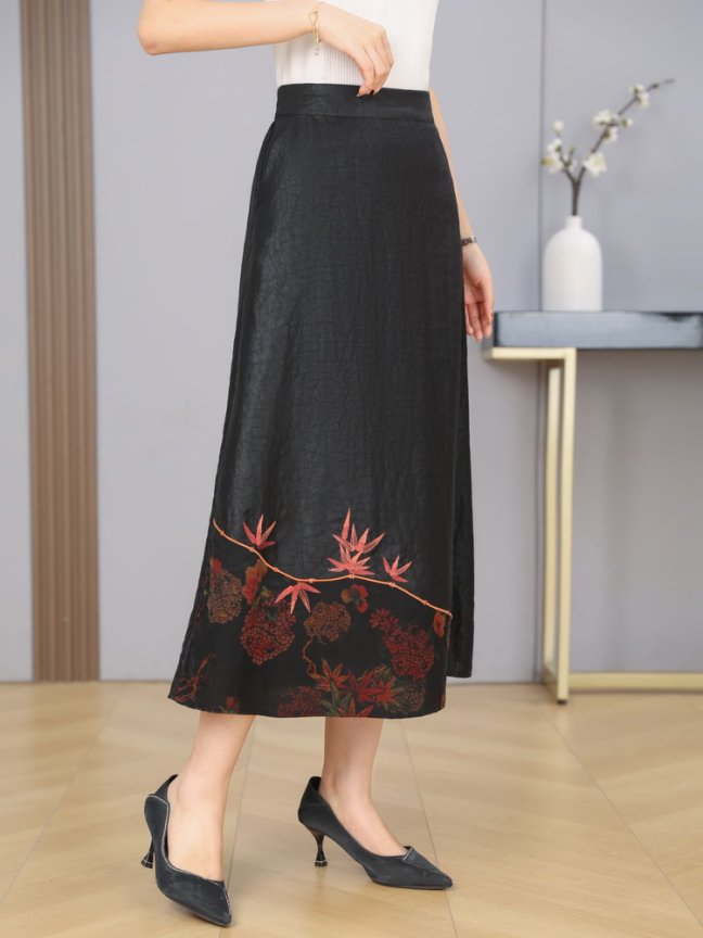 丁摩真丝香云纱龟纹国风复古半裙新中式高腰100%桑蚕丝小黑裙AL