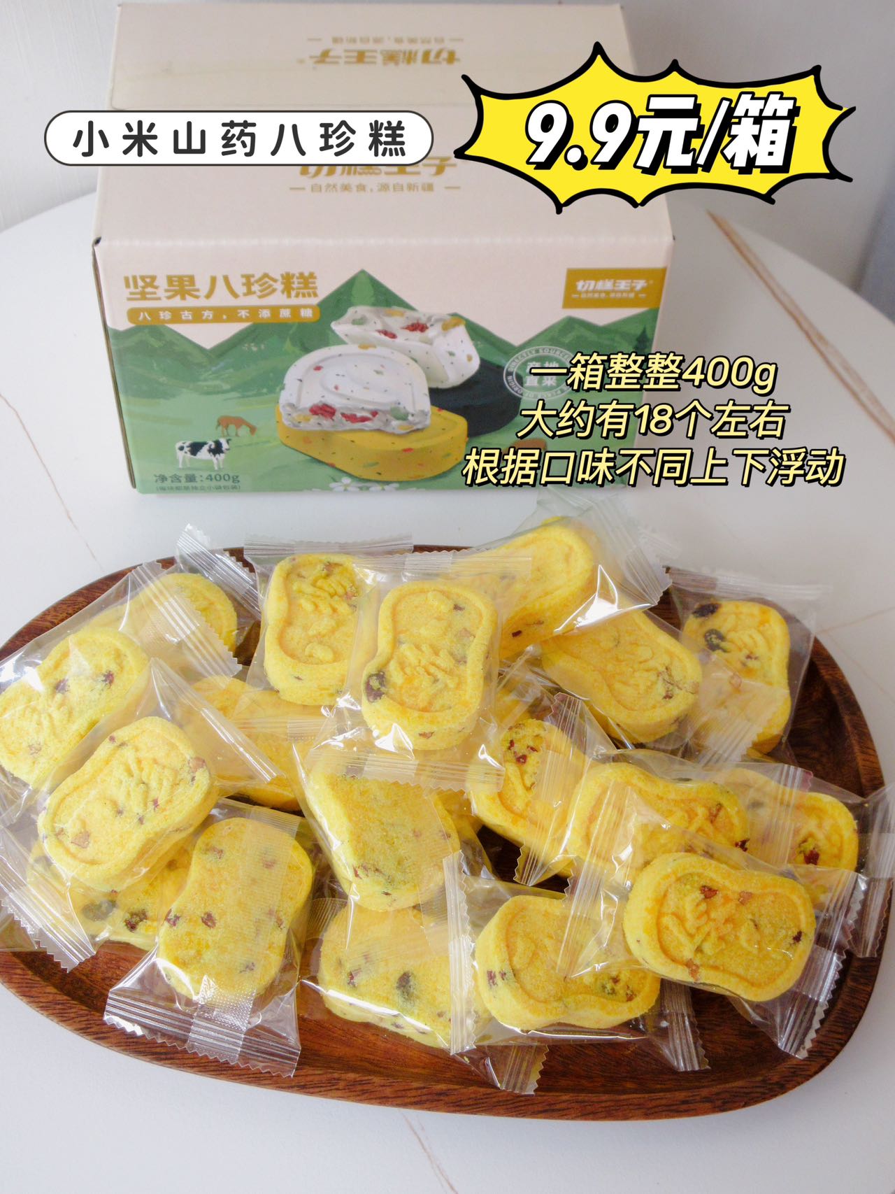 高性价比健康好物🌿咬一口立马沦陷的糕点‼9.9元就能买到一盒健康好味的传统糕点——小米山药口味的八珍糕💥一盒大约有18个左右整整400g,算下来一块八珍糕只要5毛多!