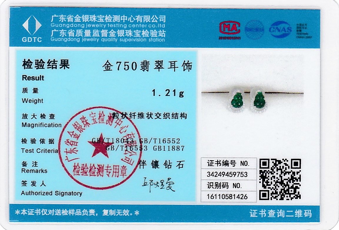 18k白金翡翠葫芦耳钉