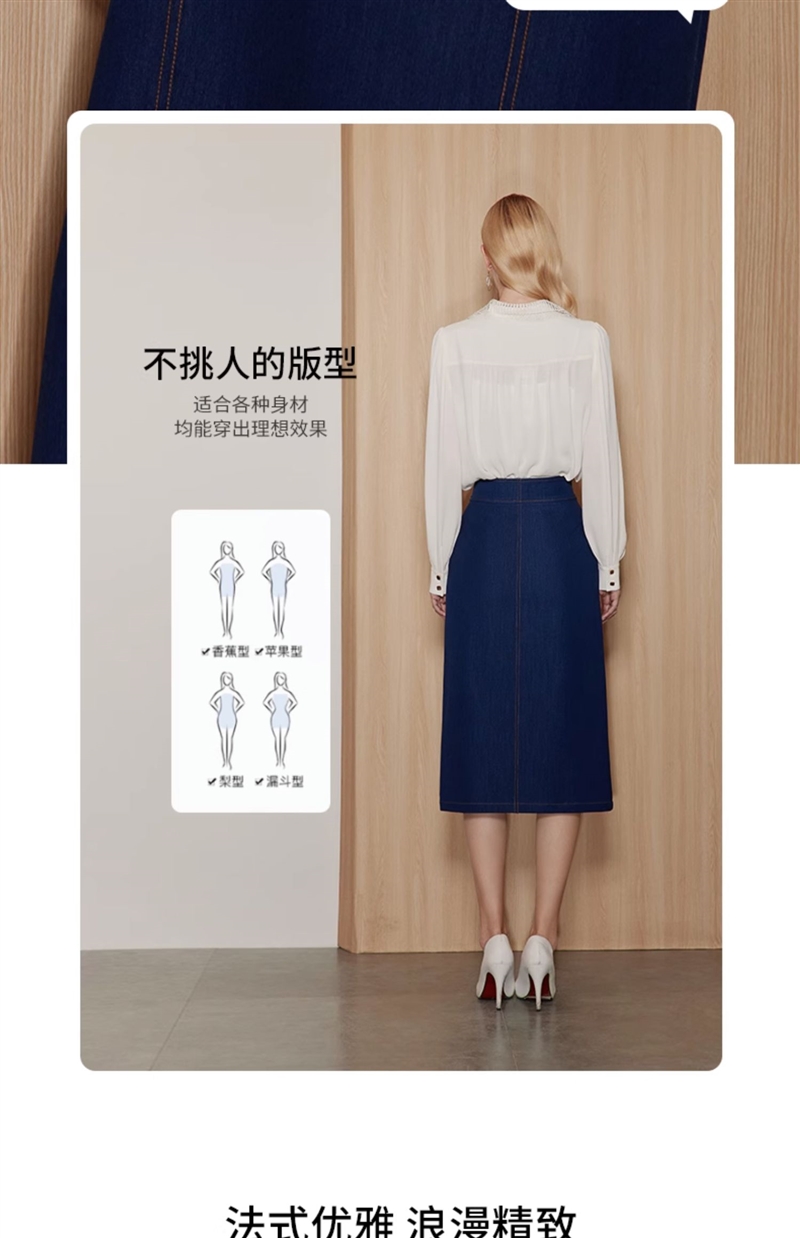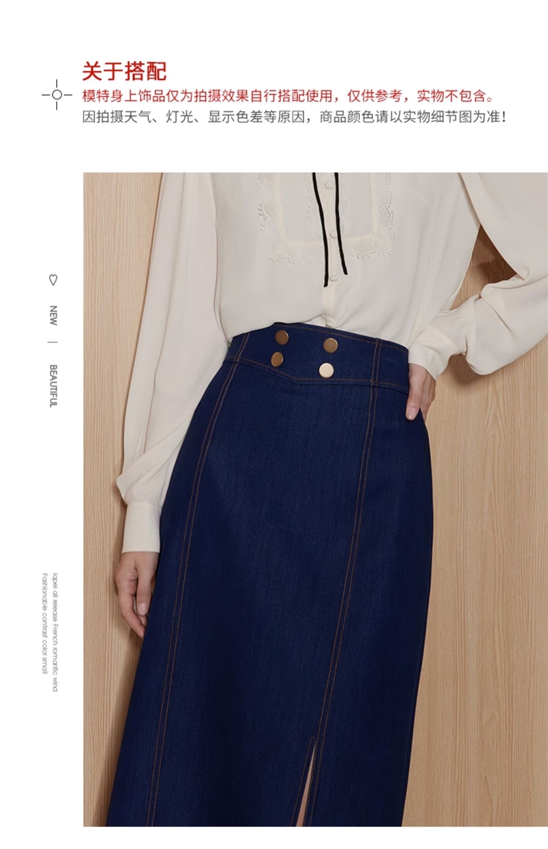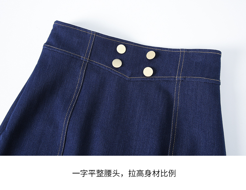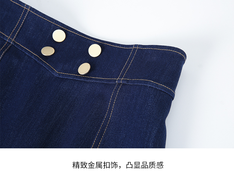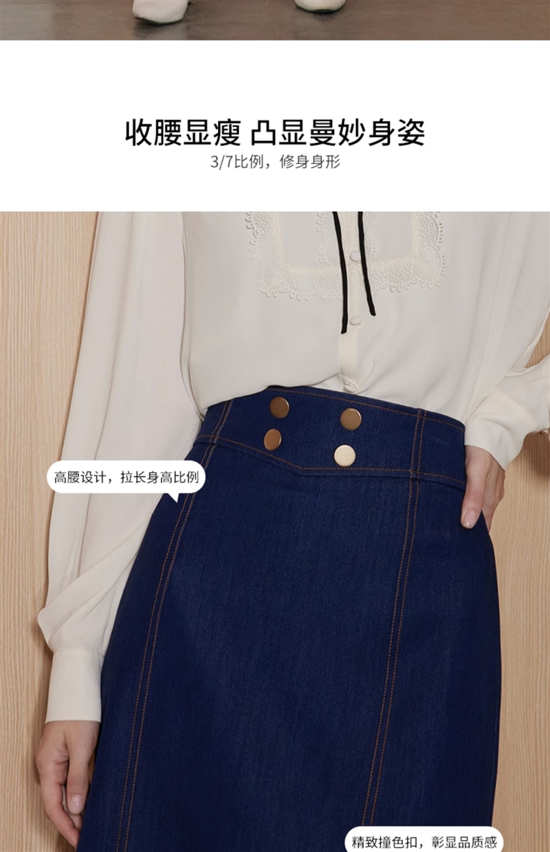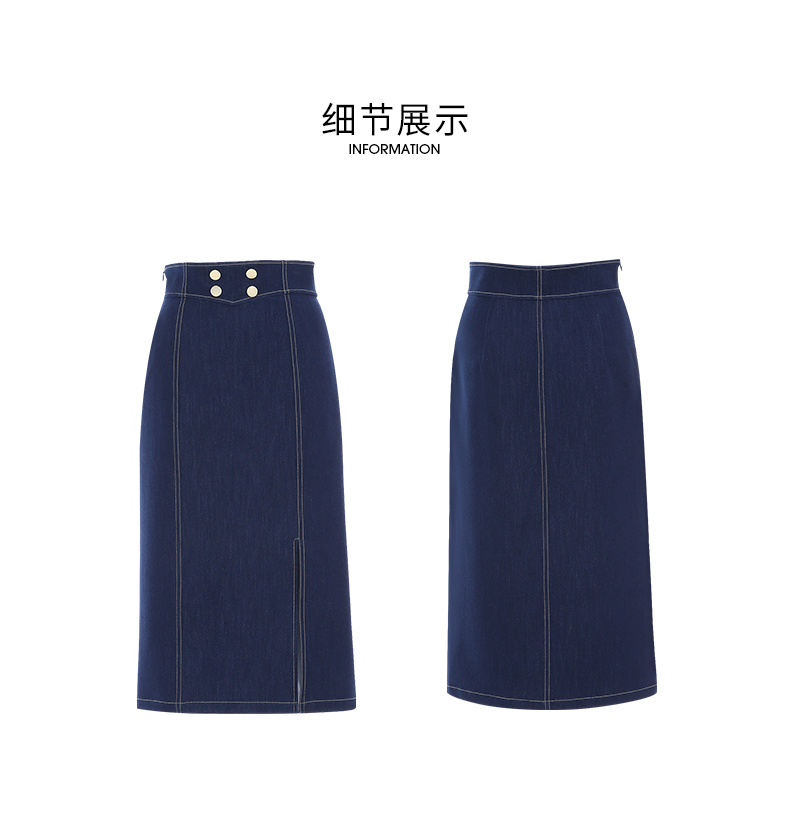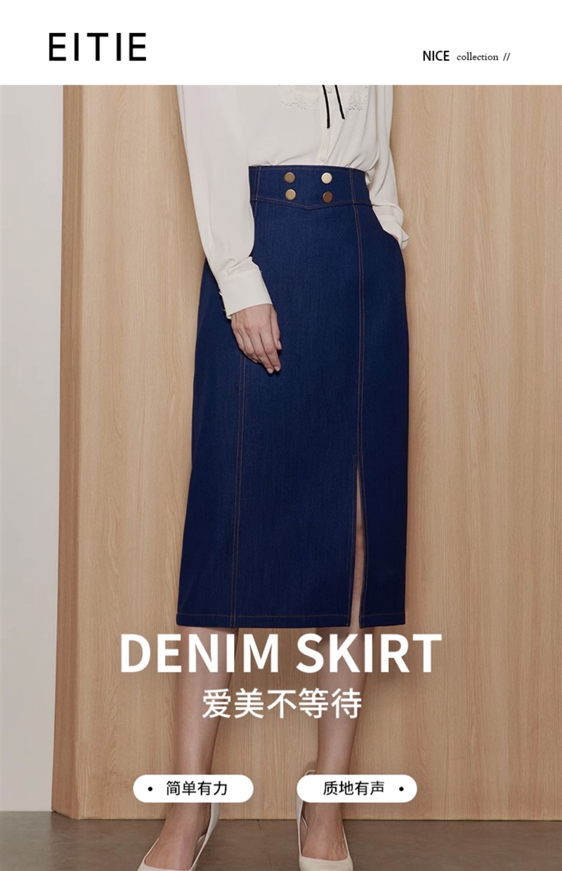EITIE/爱特爱时尚经典复古高腰开叉显瘦通勤牛仔半身裙秋季新款C2306206