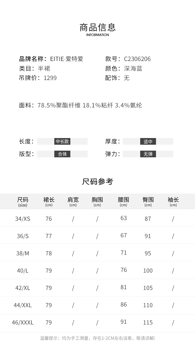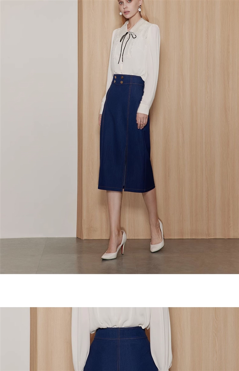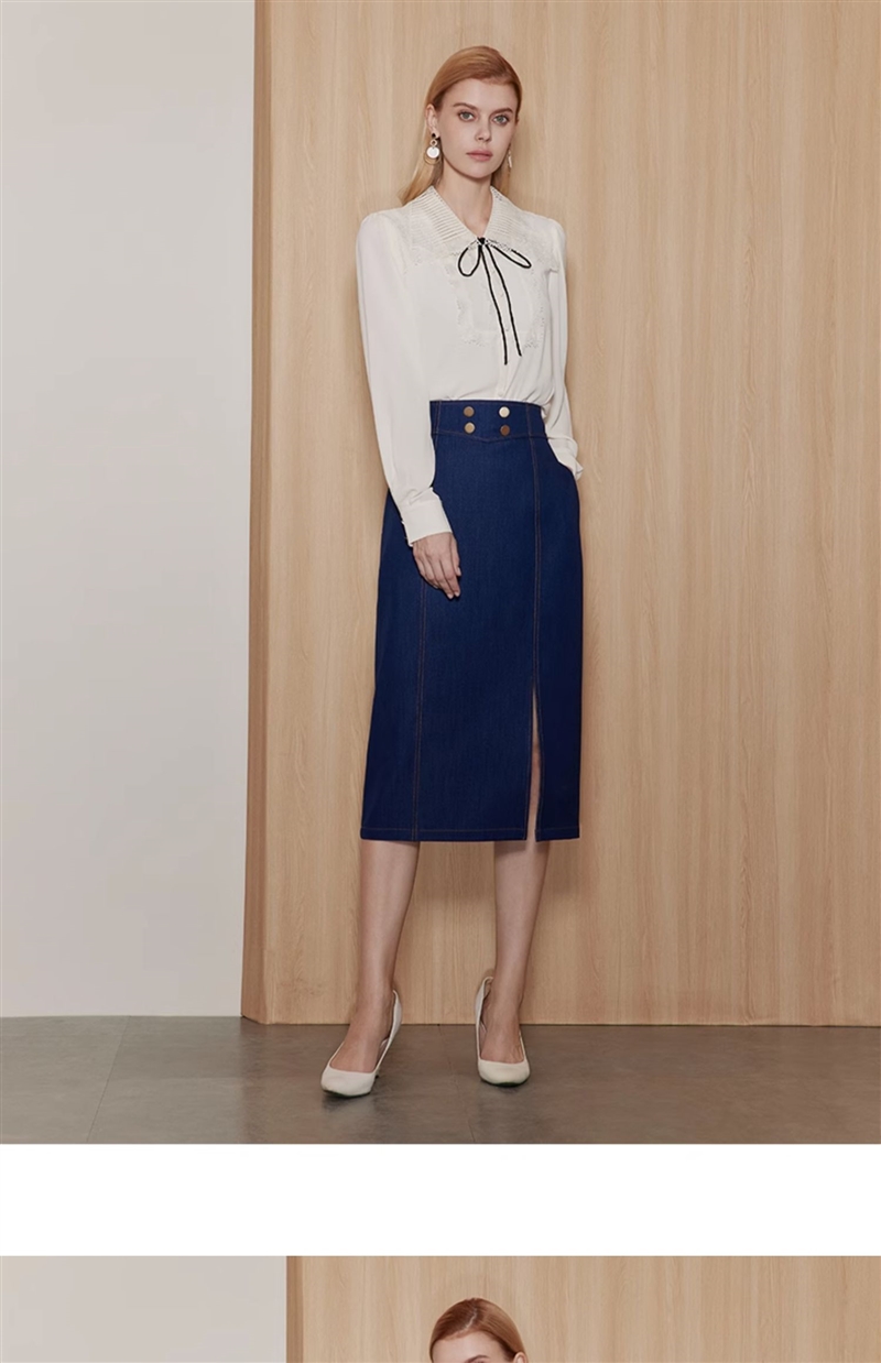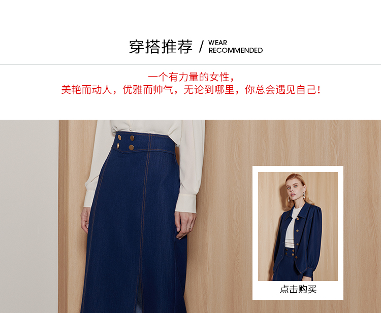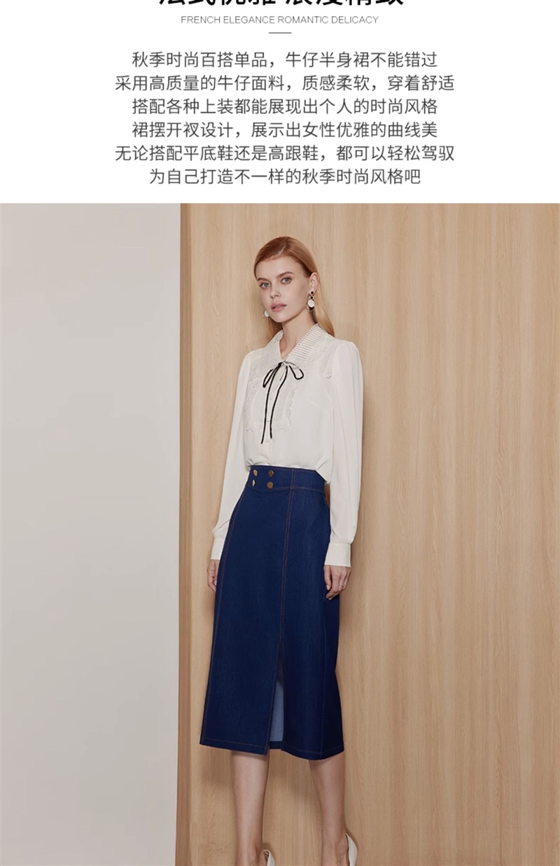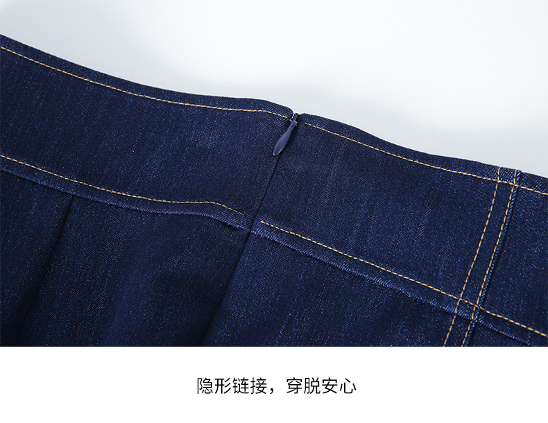 EITIE/爱特爱时尚经典复古高腰开叉显瘦通勤牛仔半身裙秋季新款C2306206