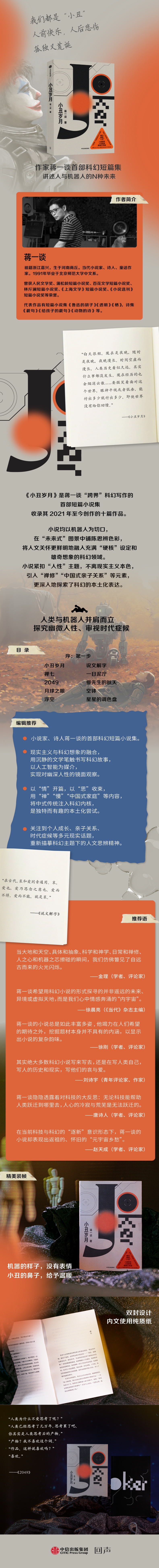《小丑岁月》是蒋一谈“跨界”科幻写作的部短篇小说集,收录其2021年至今创作的十篇作品,用沉静冷峻的笔触书写科幻故事,以机器人为切口,在“未来式”的科幻图景中铺陈思辨色彩,将人文之光更鲜明地照进充满“硬核”设定和雄奇想象的科幻领域。