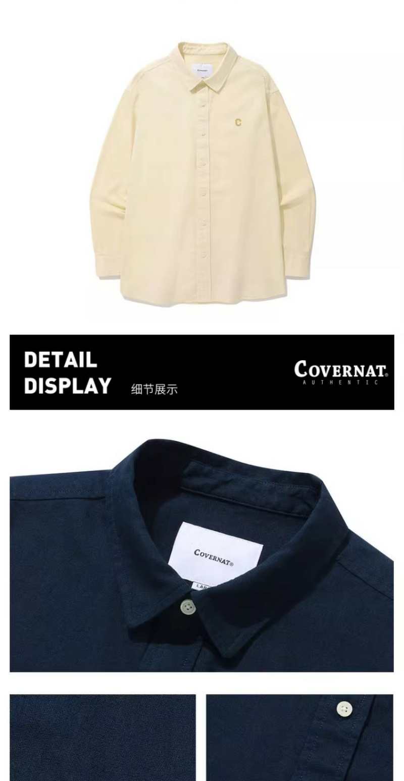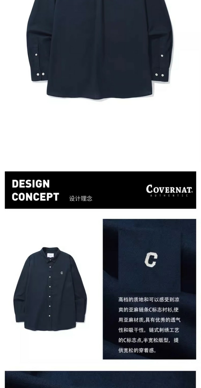 covernat韩国潮牌C刺绣LOGO 宽松亲肤亚麻衬衫2024春夏新品CO2401SH06