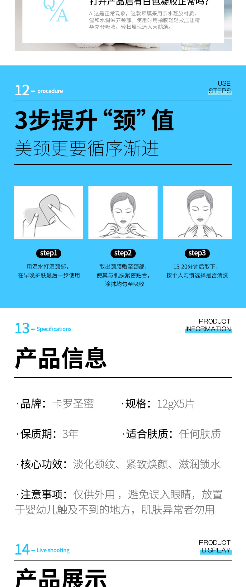 【卡罗圣蜜颈纹小熨斗】淡化颈纹紧致下颌线柔滑细腻焕亮肤色多方位呵护实力淡颈纹弹力亲肤冰感呵护小巧便携柔滑紧致颈膜一膜全部解决