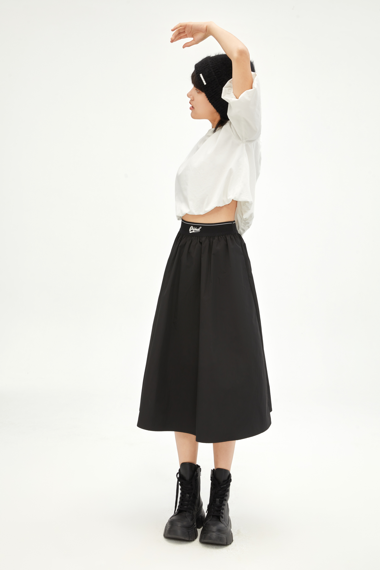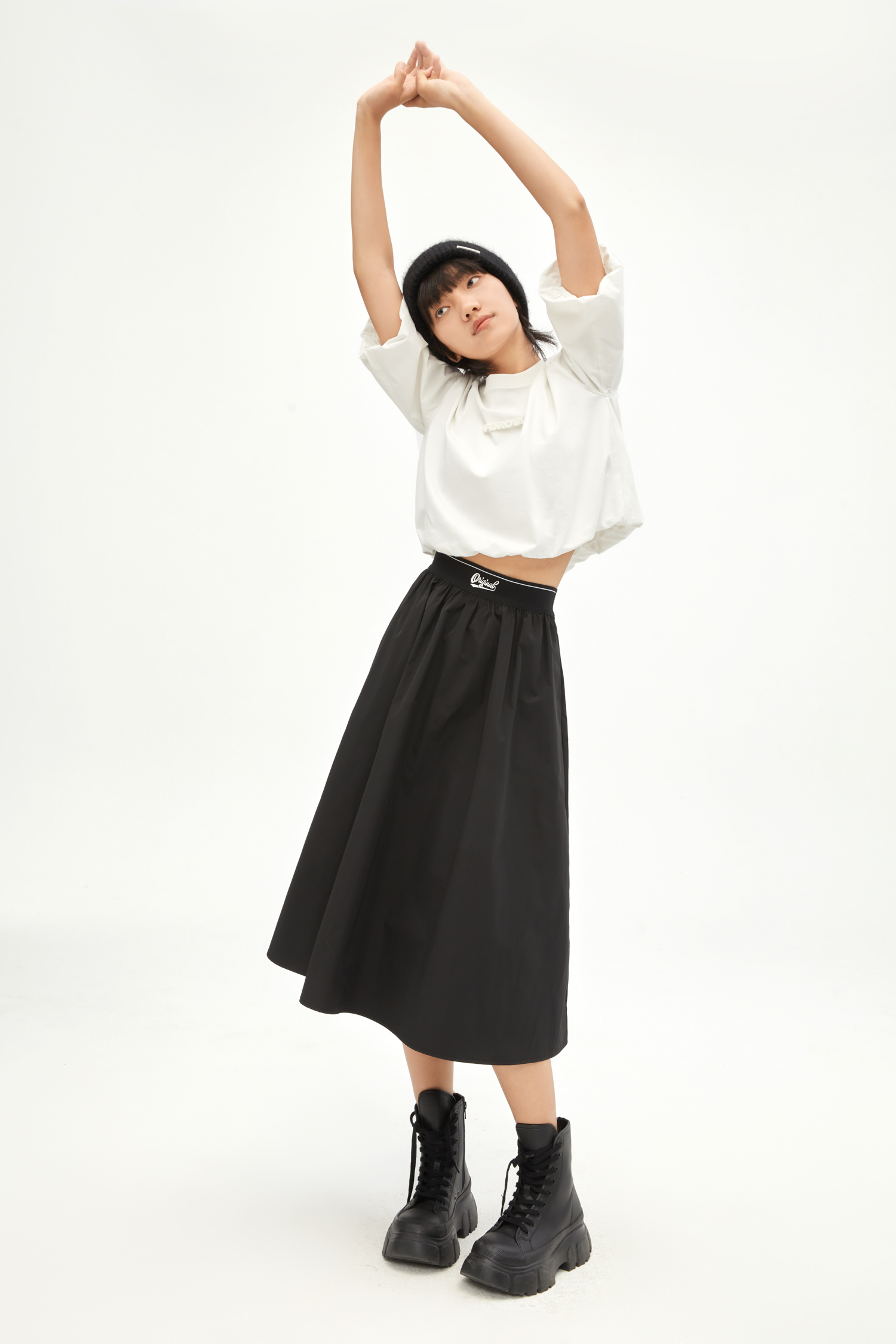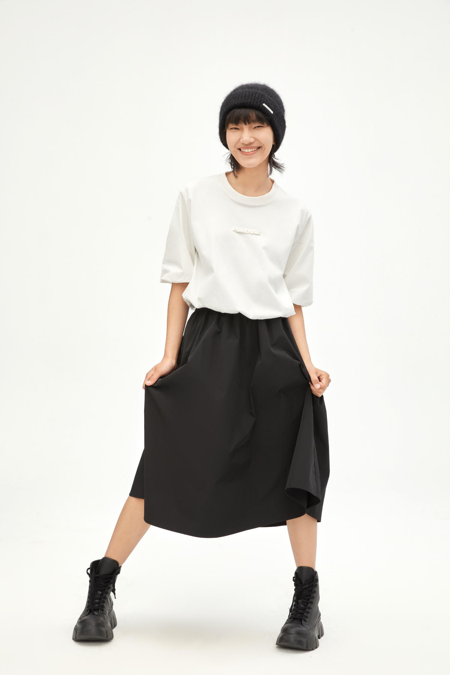 【XS1M1】有兰 酷感抽褶伞裙半身裙IM3SK01