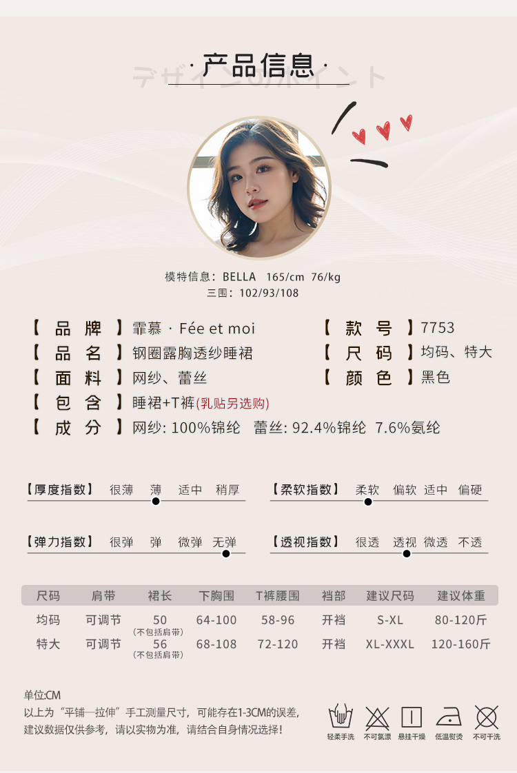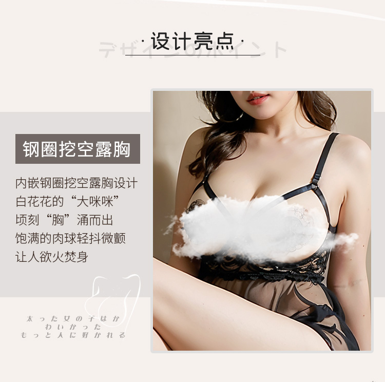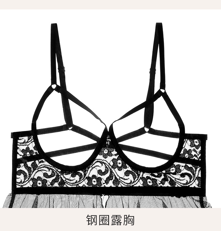 【透视睡裙】霏慕钢托露胸透视纱睡裙7753