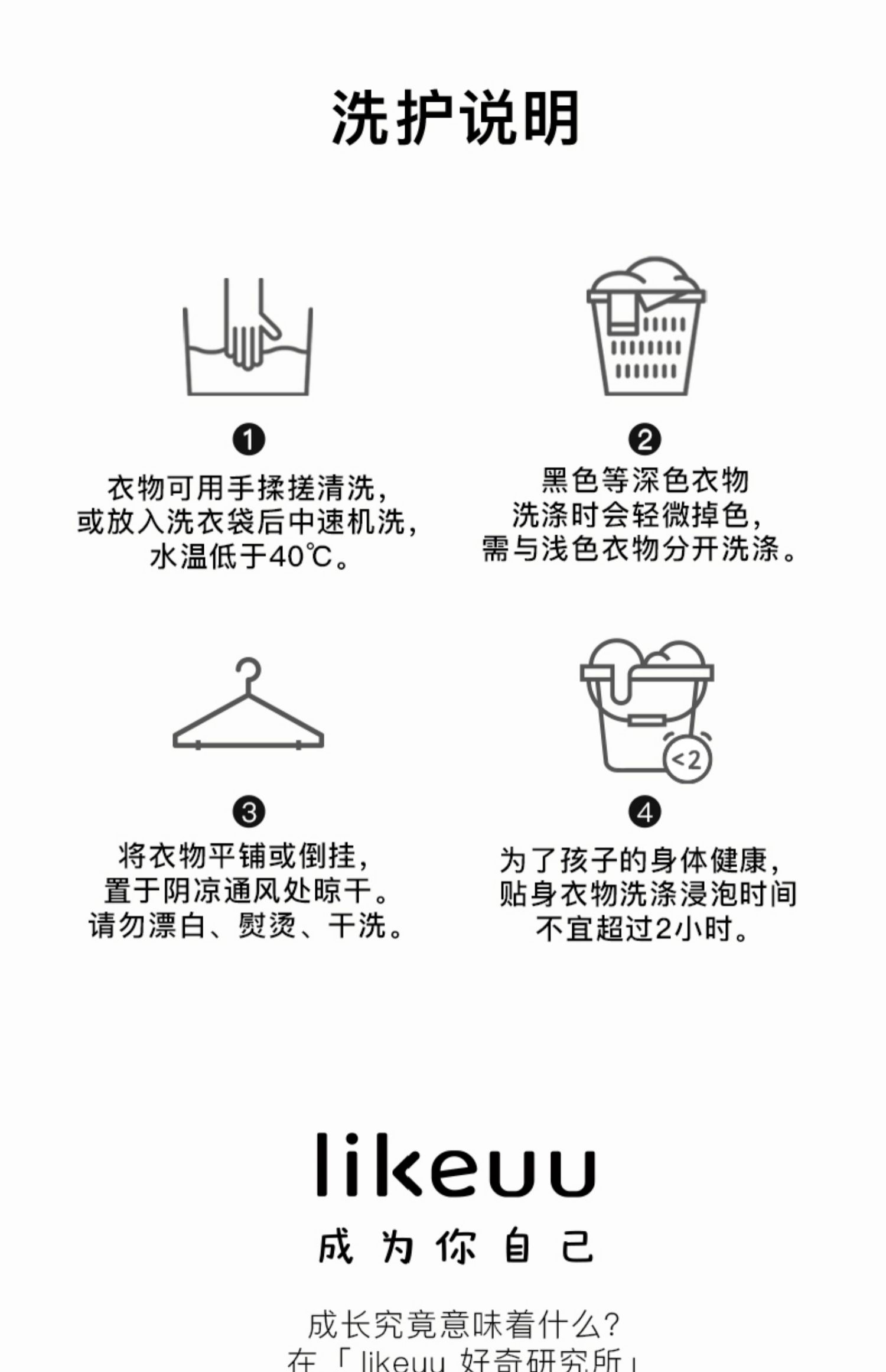 - likeuu是专注于为6~15岁的青少年创造柔软、无束缚的成长体验,以好奇心为灵感的成长发育期贴身衣物品牌。likeuu的产品覆盖内衣、内裤、保暖衣、家居服、运动等品类。
