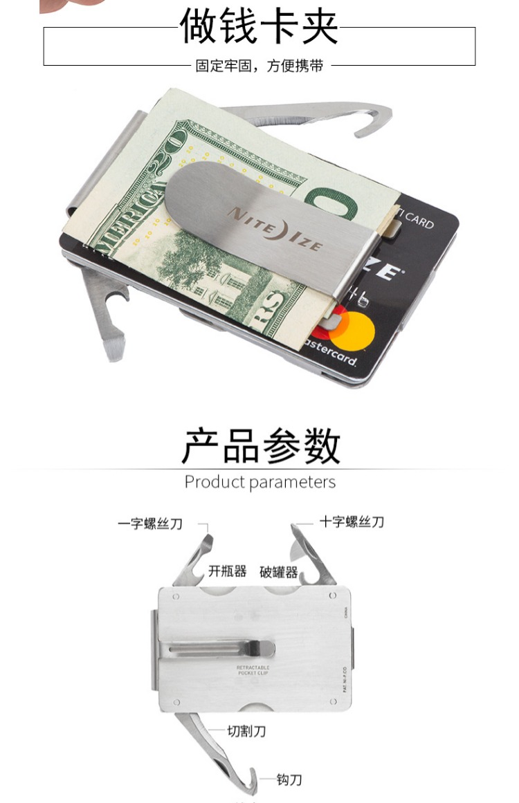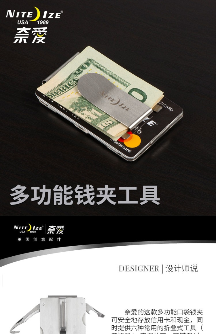 美国NiteIZE奈爱多功能组合工具钱夹一夹多用不锈钢创意时尚钱夹
