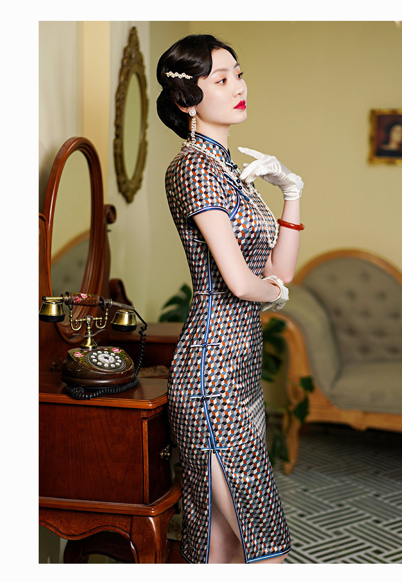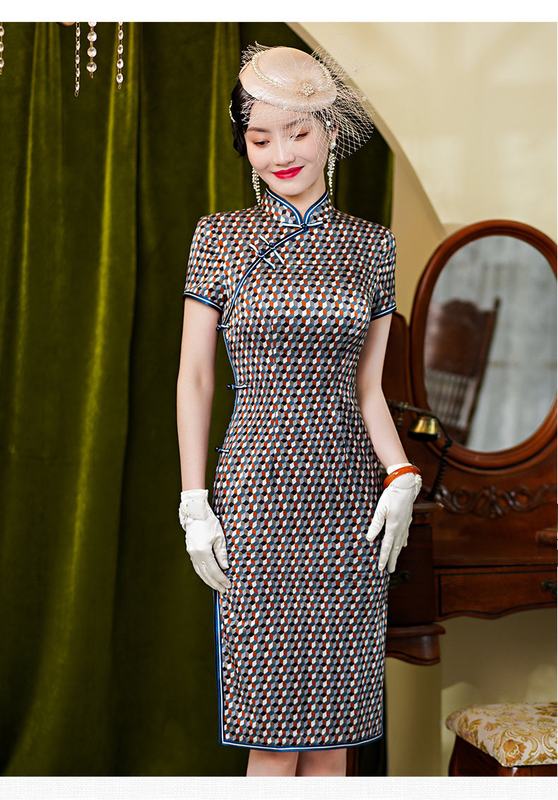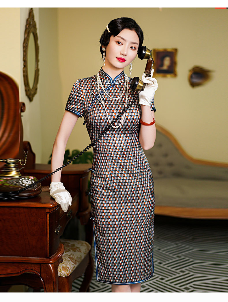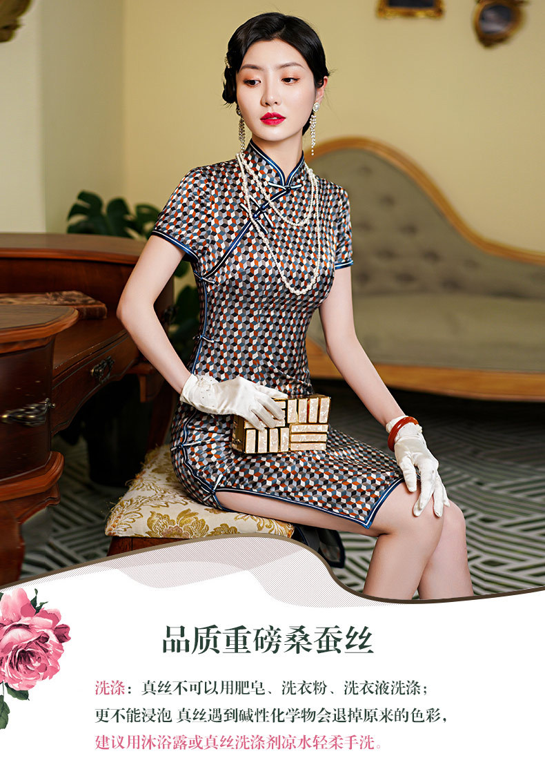 WX新款真丝旗袍桑蚕丝复古夏季中长女改良日常年轻款