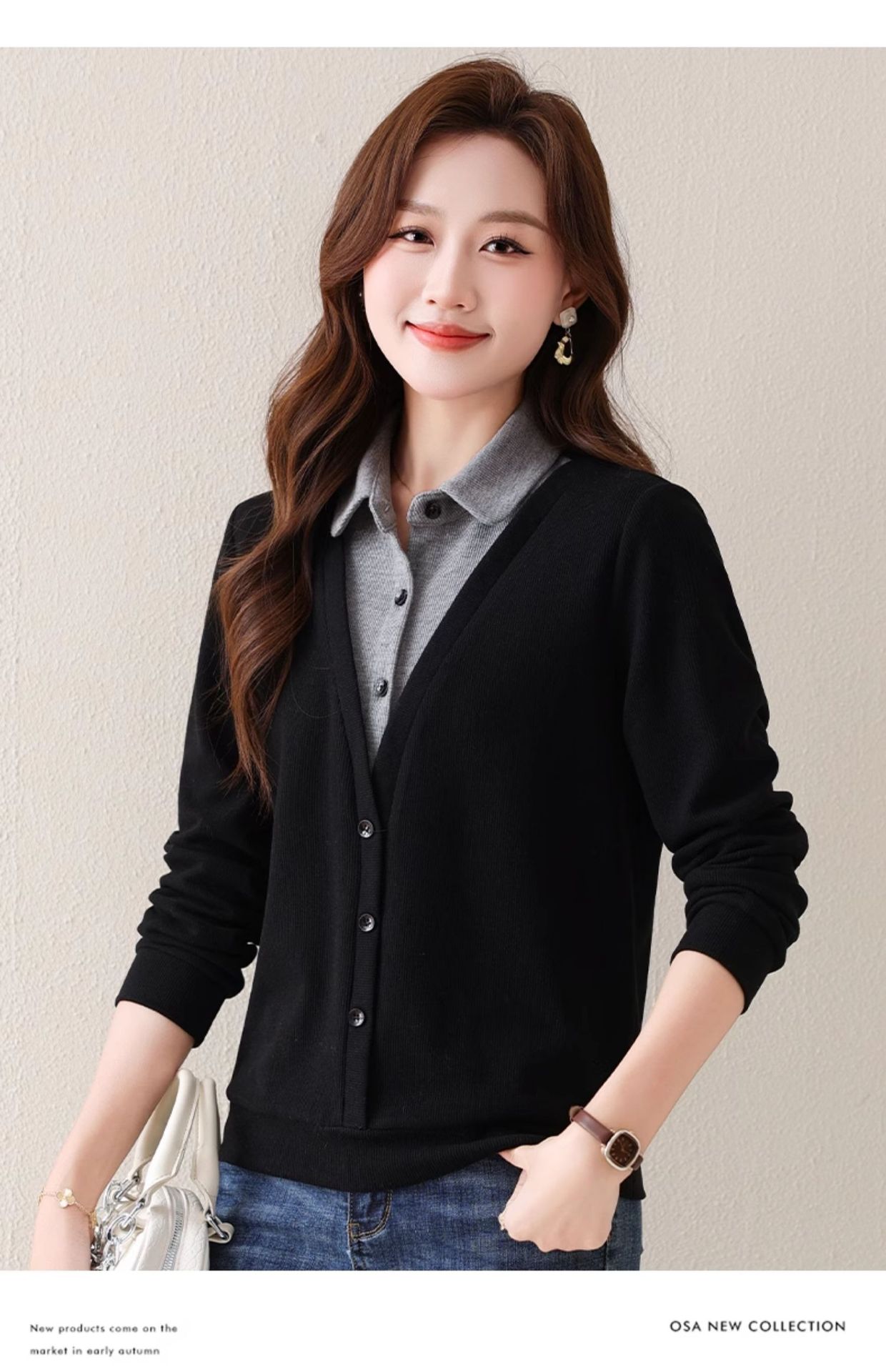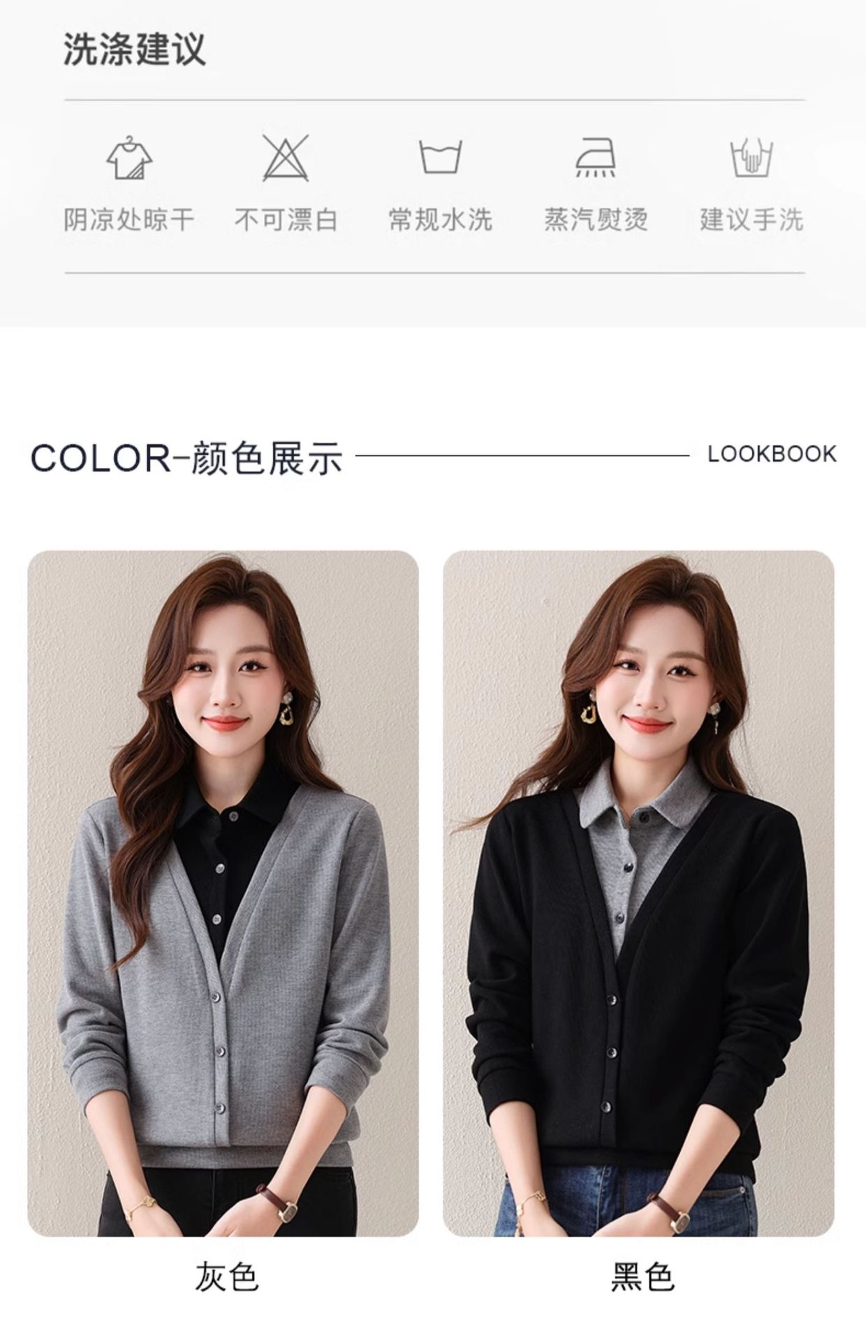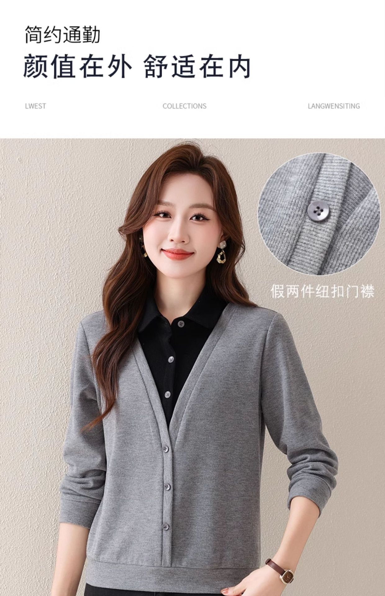 百媚生翻领衬衫假两件时尚洋气上衣2290 商品图2