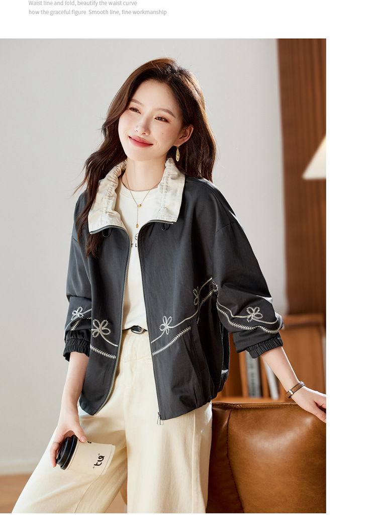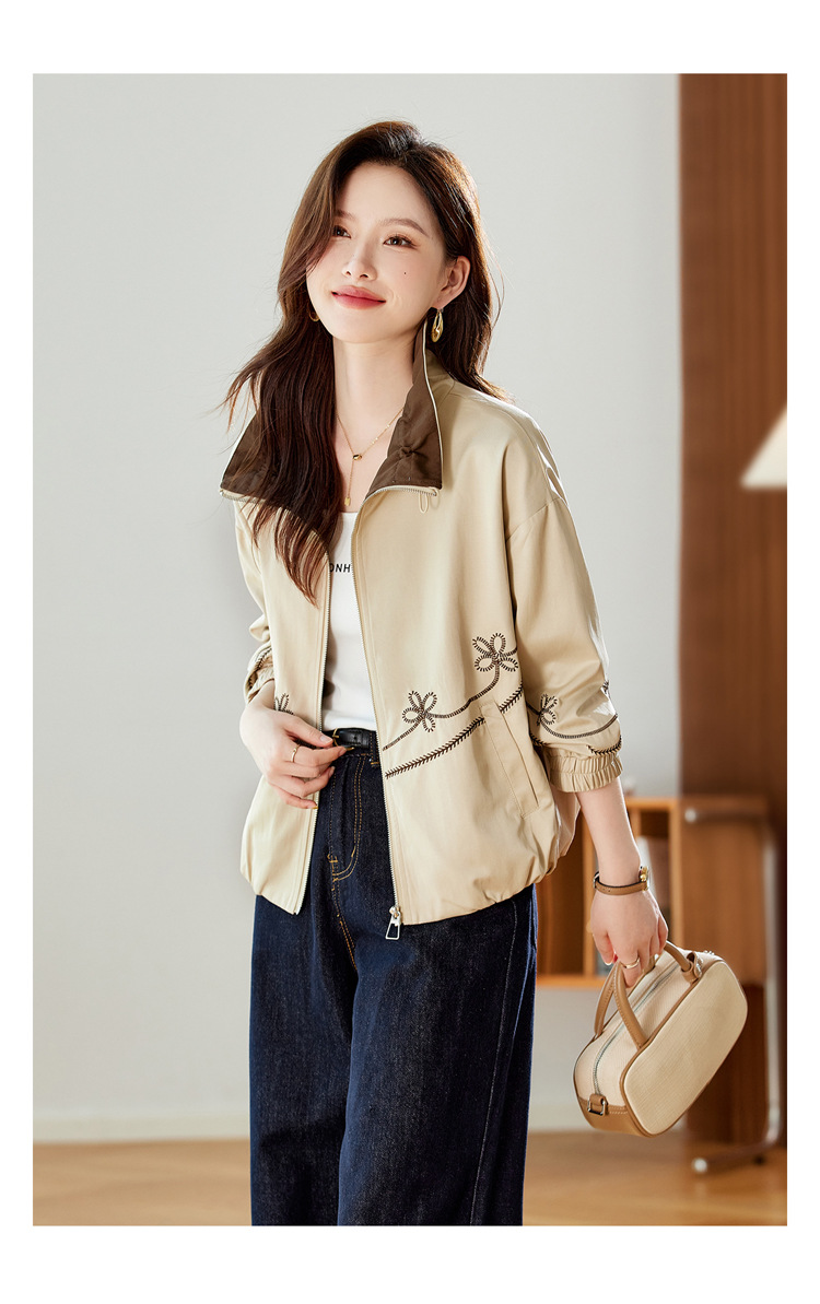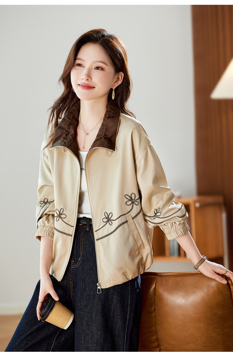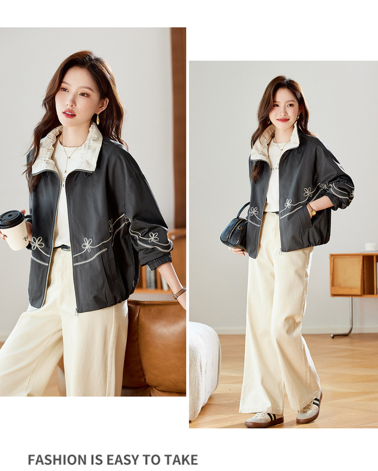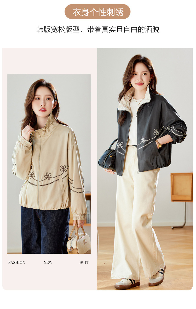 百媚生 棉质夹克设计感刺绣花朵收腰外套BKYBL2533
