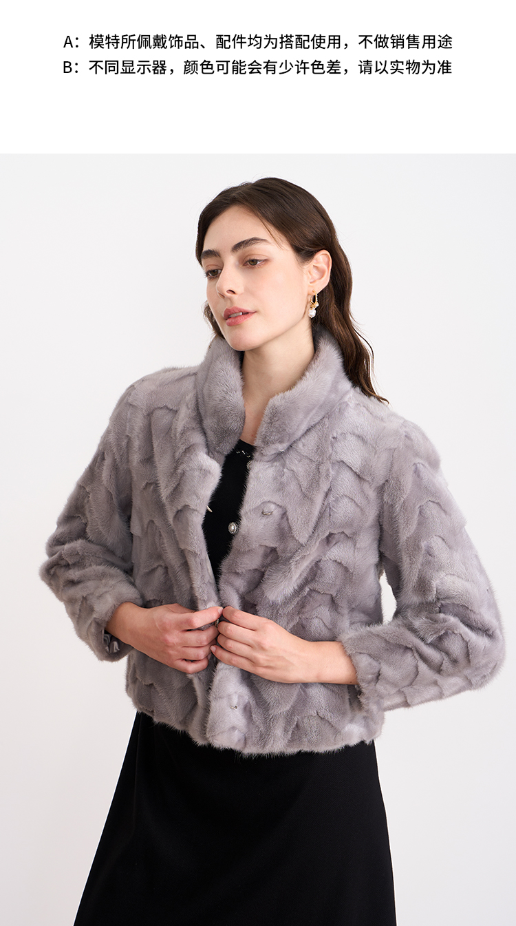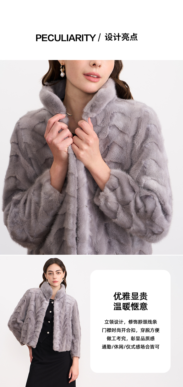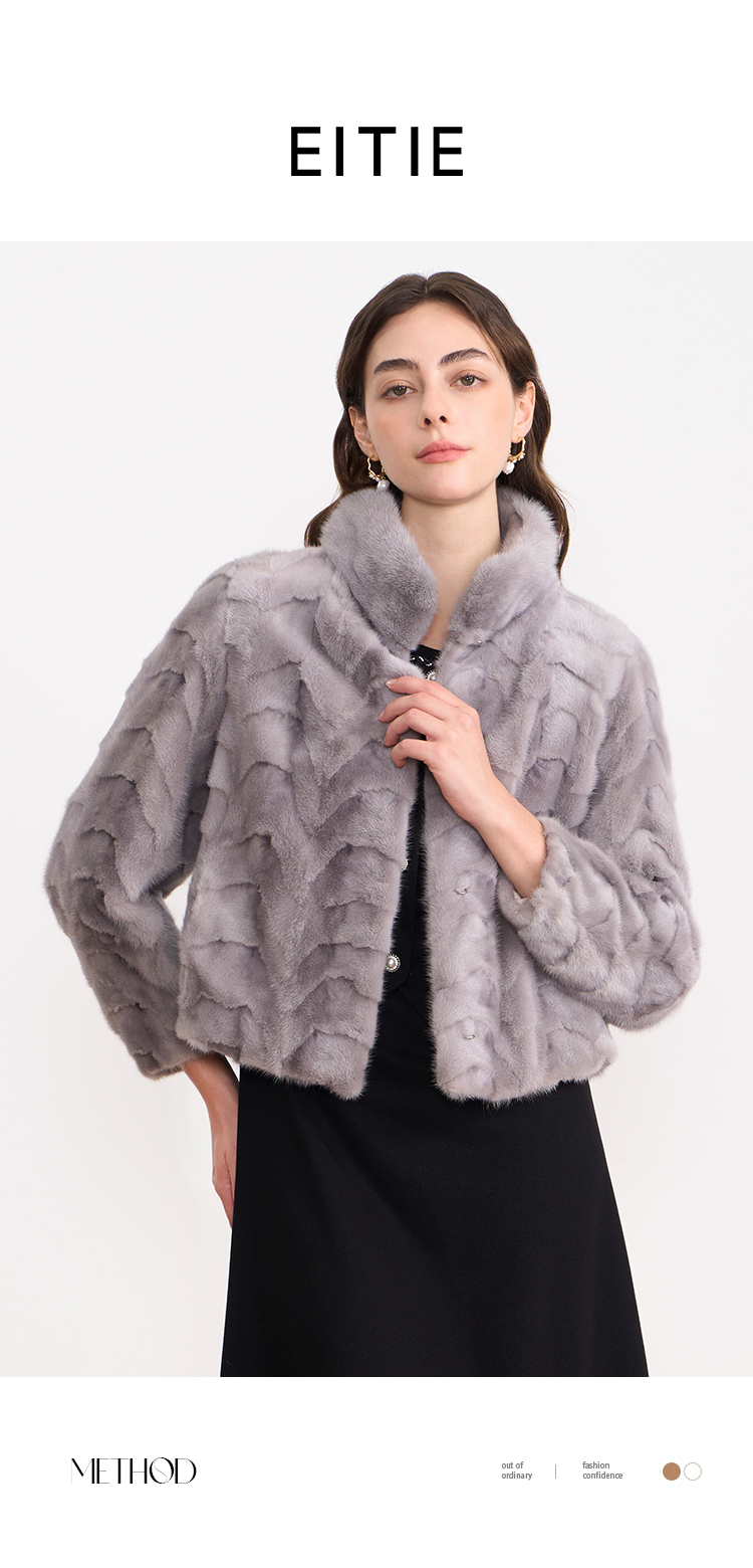 EITIE爱特爱时尚气质立领显瘦短款水貂毛皮草外套2025冬季新款D2593919X