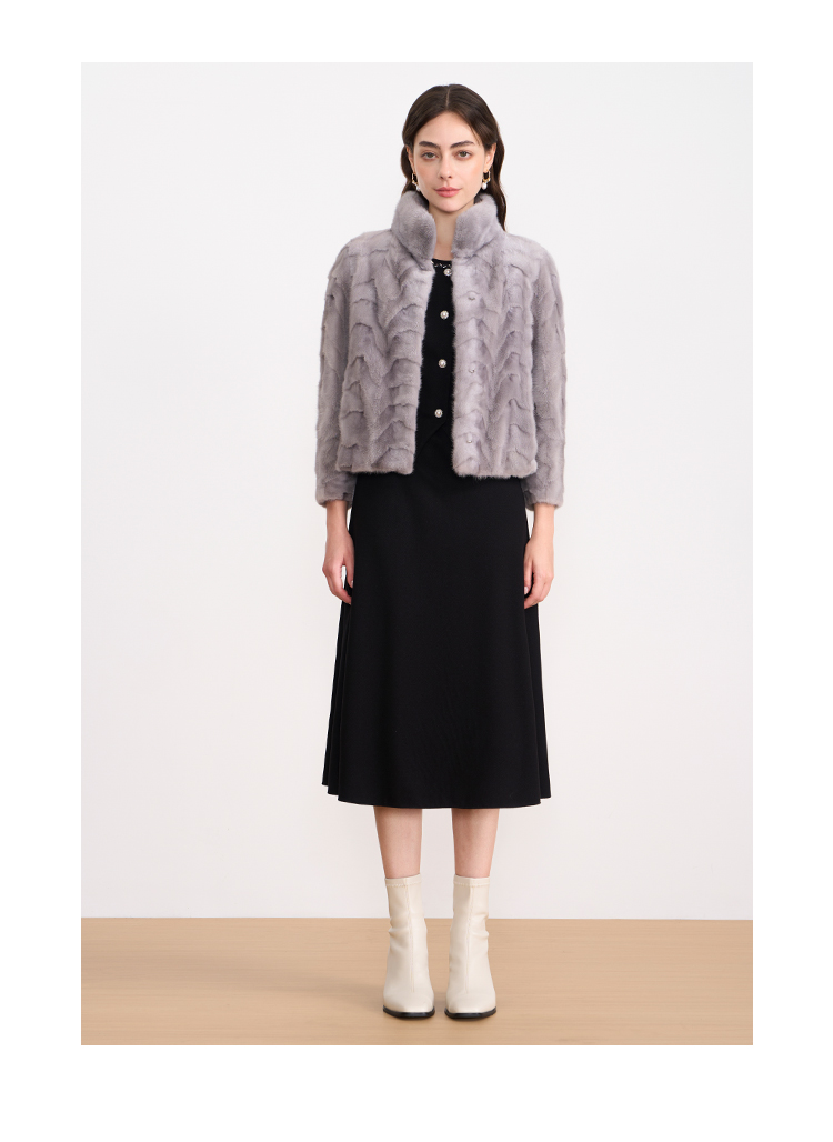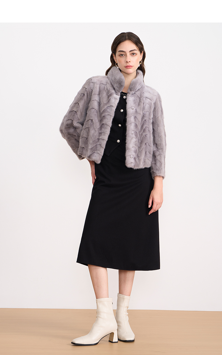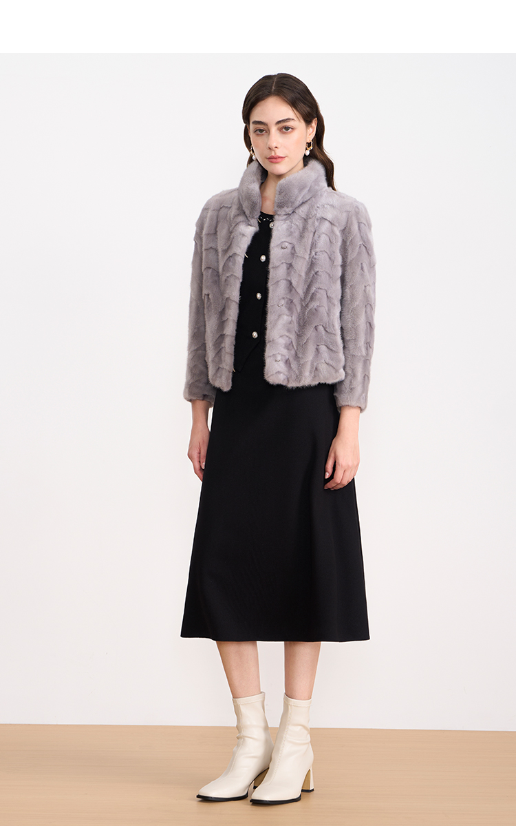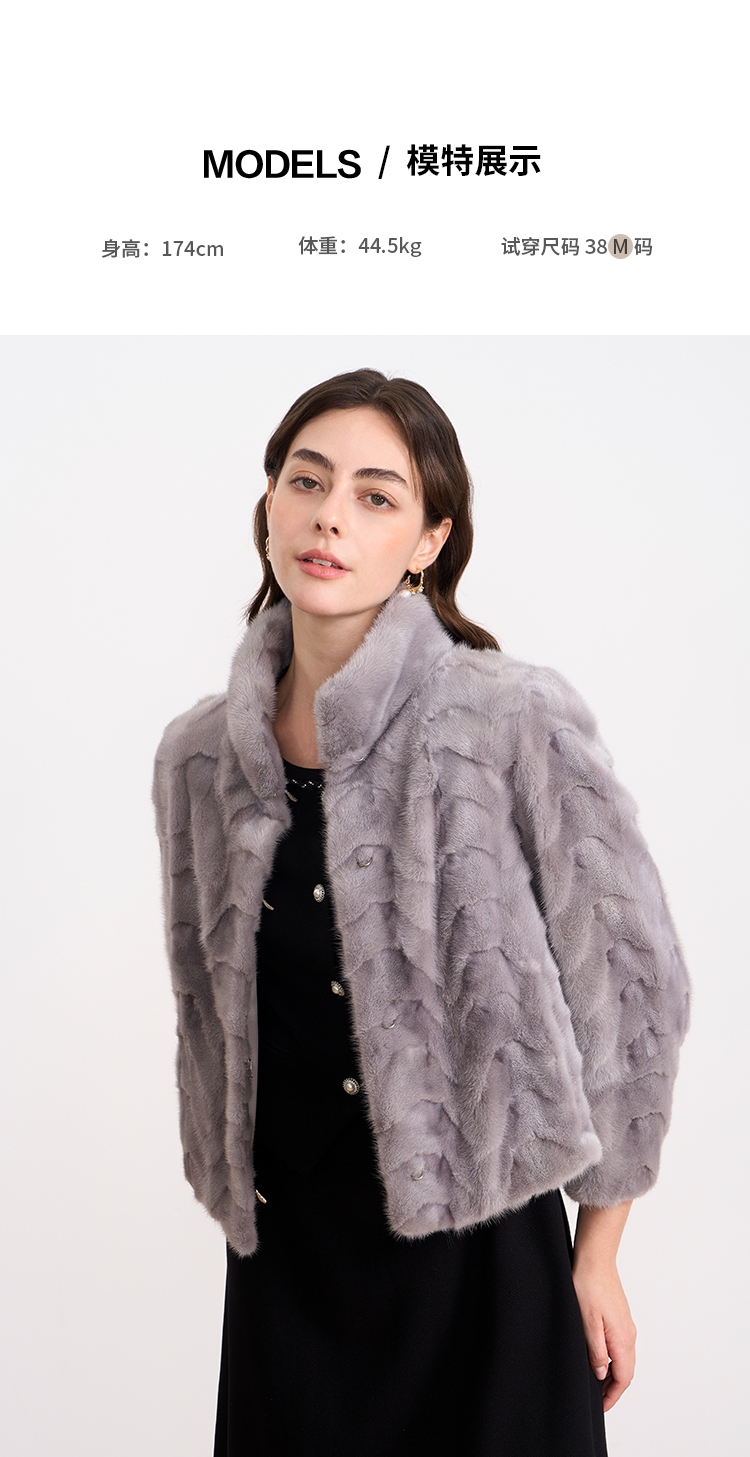 EITIE爱特爱时尚气质立领显瘦短款水貂毛皮草外套2025冬季新款D2593919X