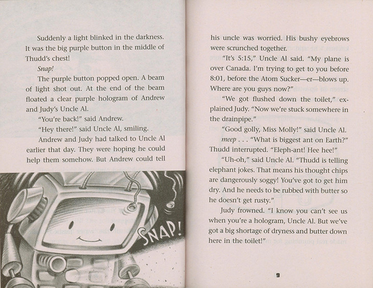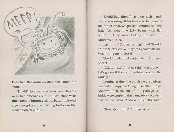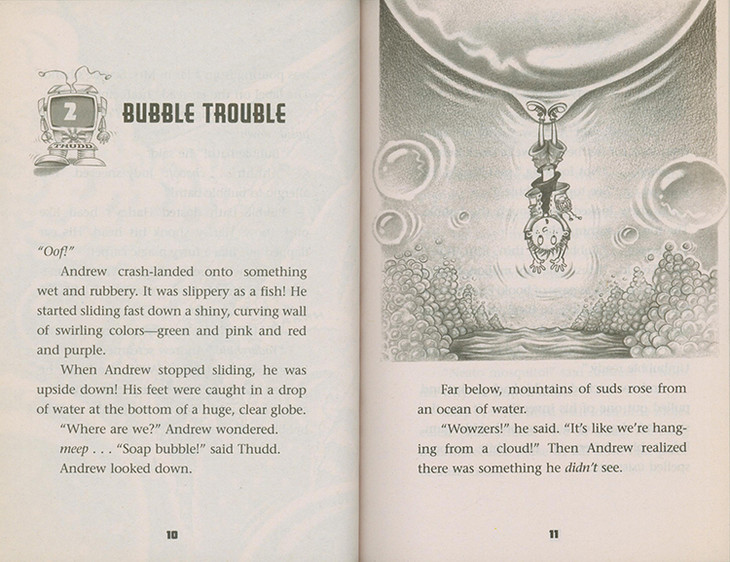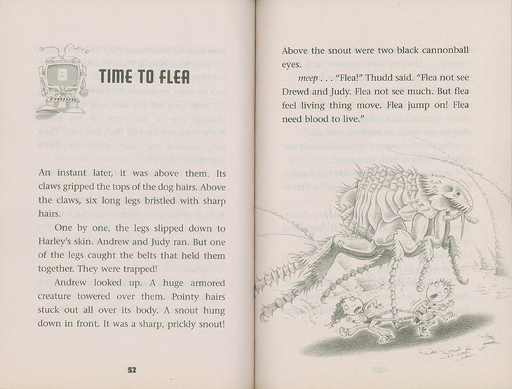 这是非常难得的一套儿童科幻冒险小说,把科普知识和故事有机地结合在一起。主人公Andrew Dubble,是个10岁的小男孩,很喜欢发明新奇的东西,但他的发明总是不能朝他期望的方向发展。Judy是Andrew的表姐,比 Andrew大3岁,常常在无意间卷入Andrew制造的麻烦中。两个小朋友因为意外身体被缩小, 以此为故事主线,带着读者一起探索周围的微小世界。
