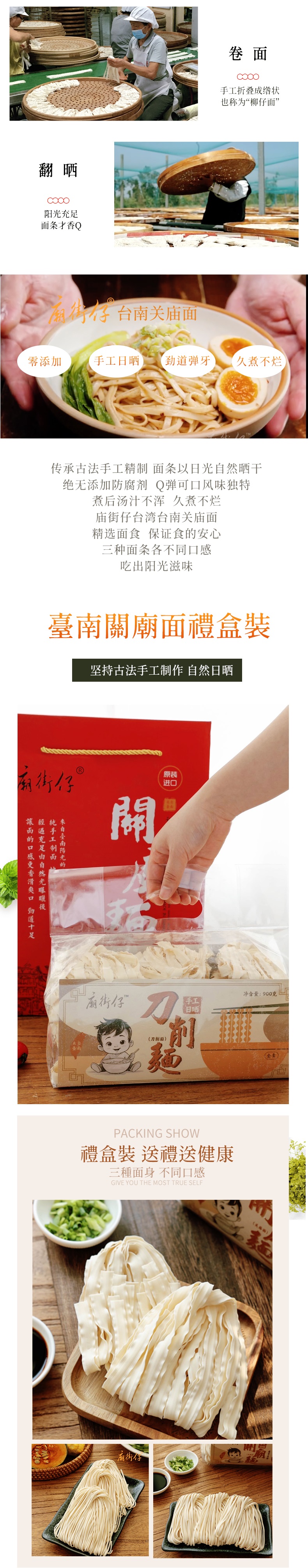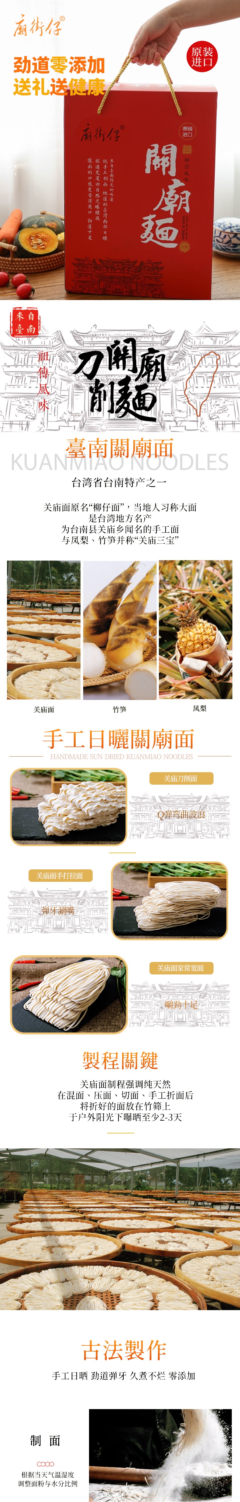 【米面精选】台湾廟街仔关庙面 台南百年历史特色美食 与凤梨 竹笋并称为“关庙三宝” 传统工艺 手打日晒 久煮不软烂 Q弹筋道爽滑 独特麦香 温和养胃