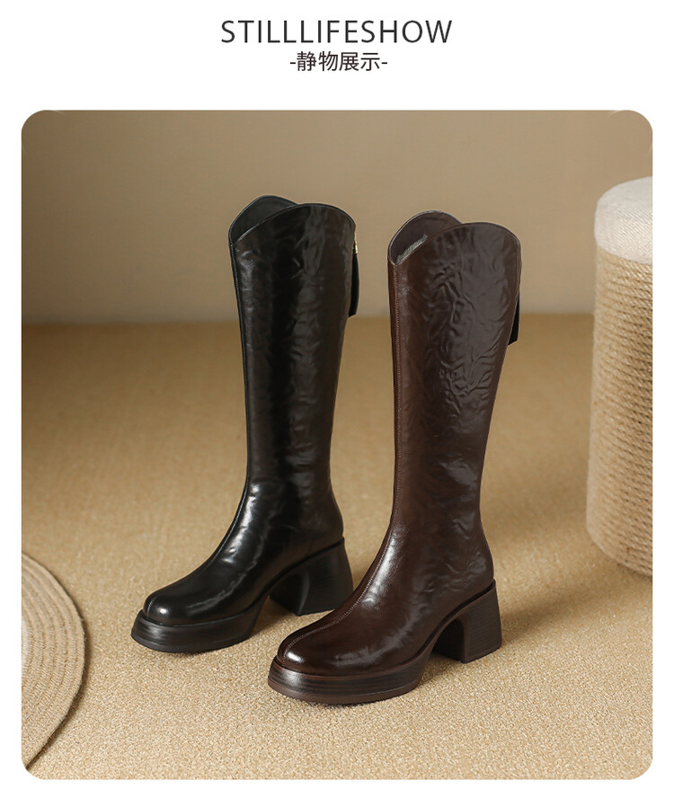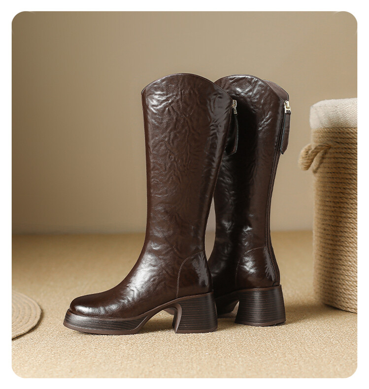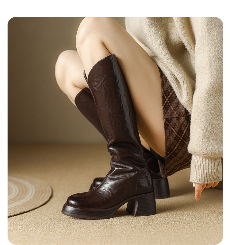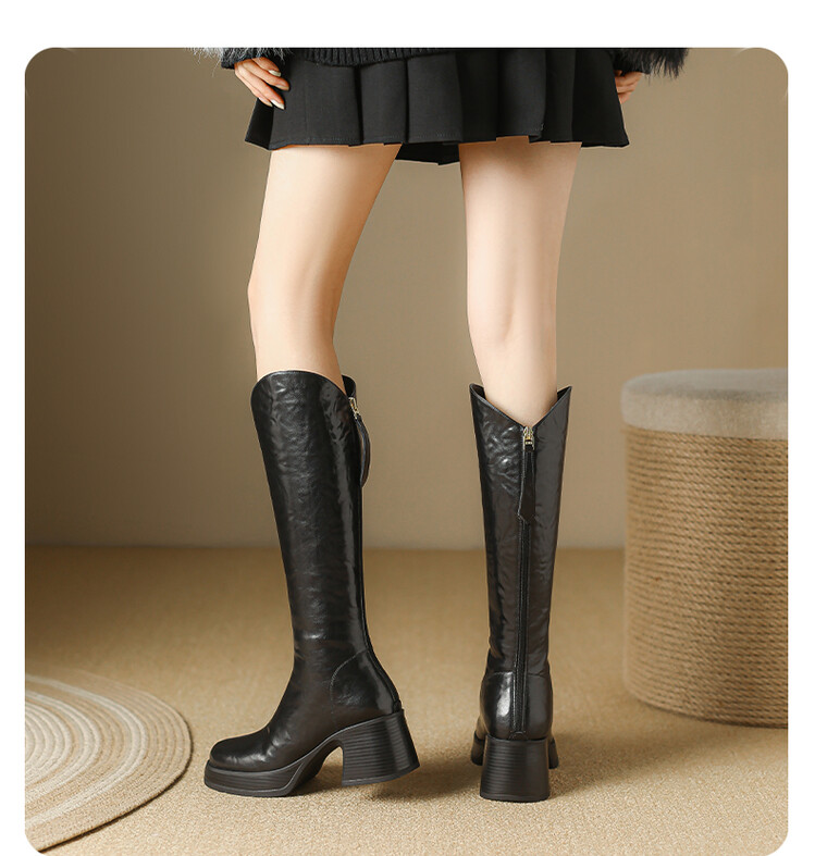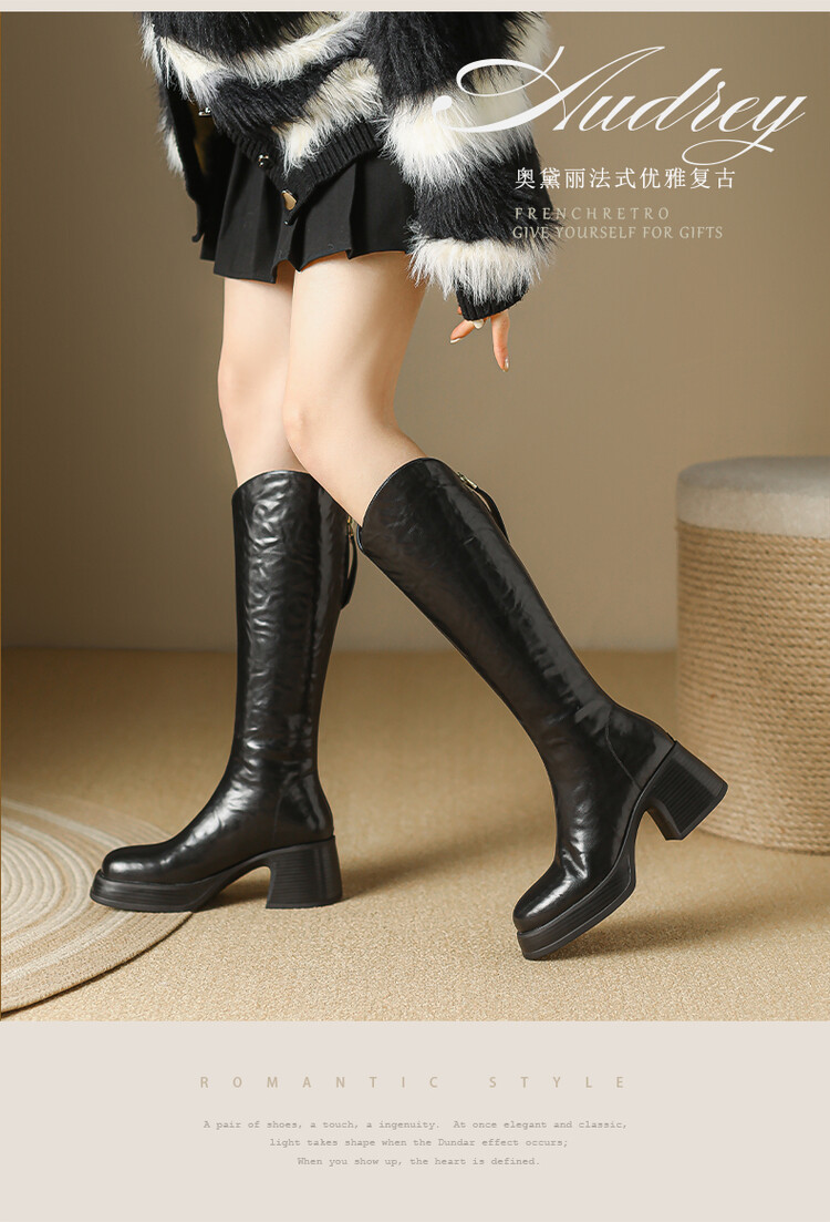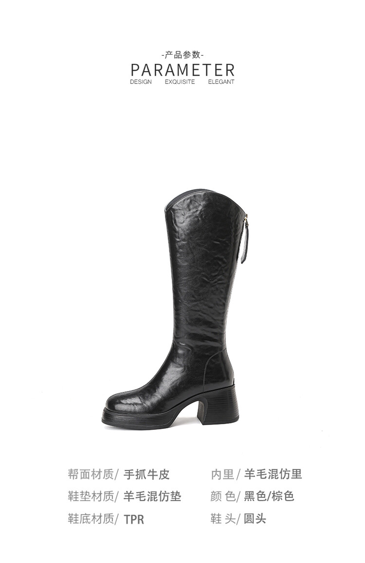 【预售7天】羊毛靴骑士靴女冬季加绒斜口高筒靴粗跟气质西部MBJR&695
