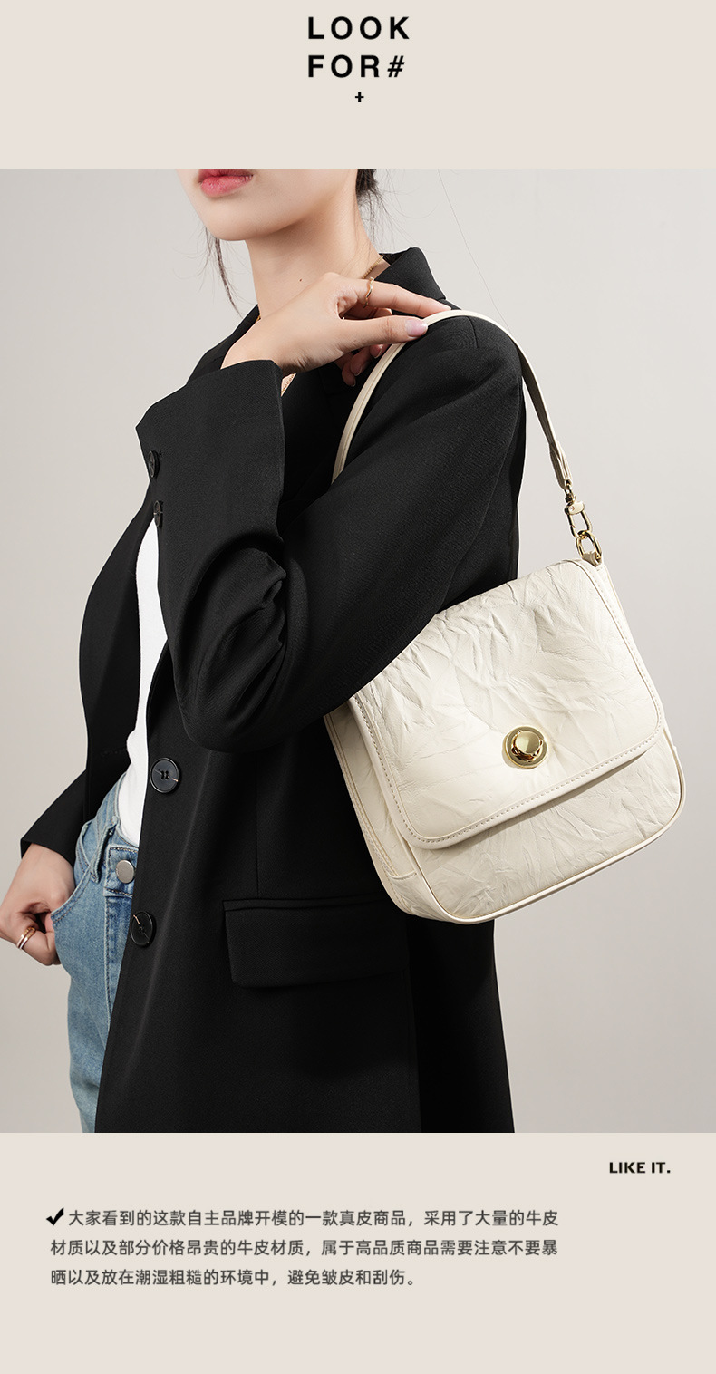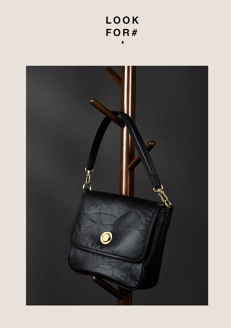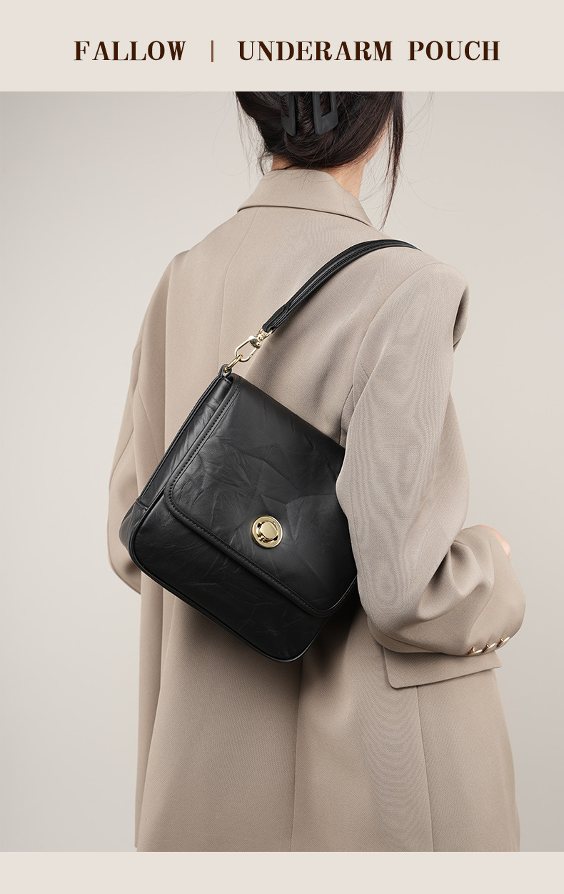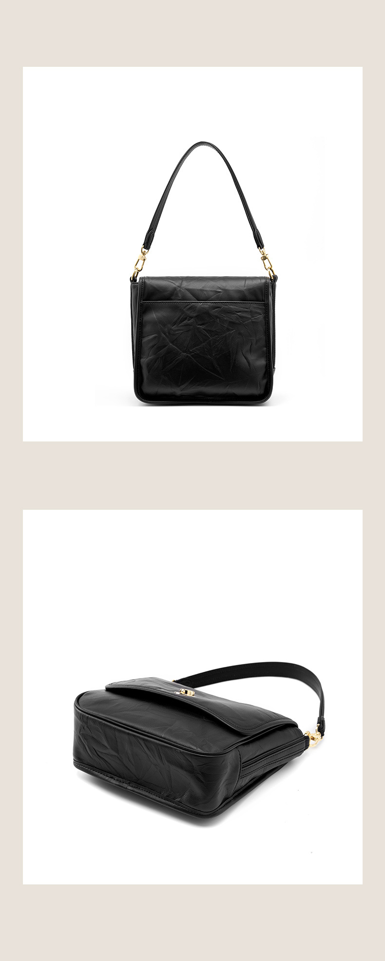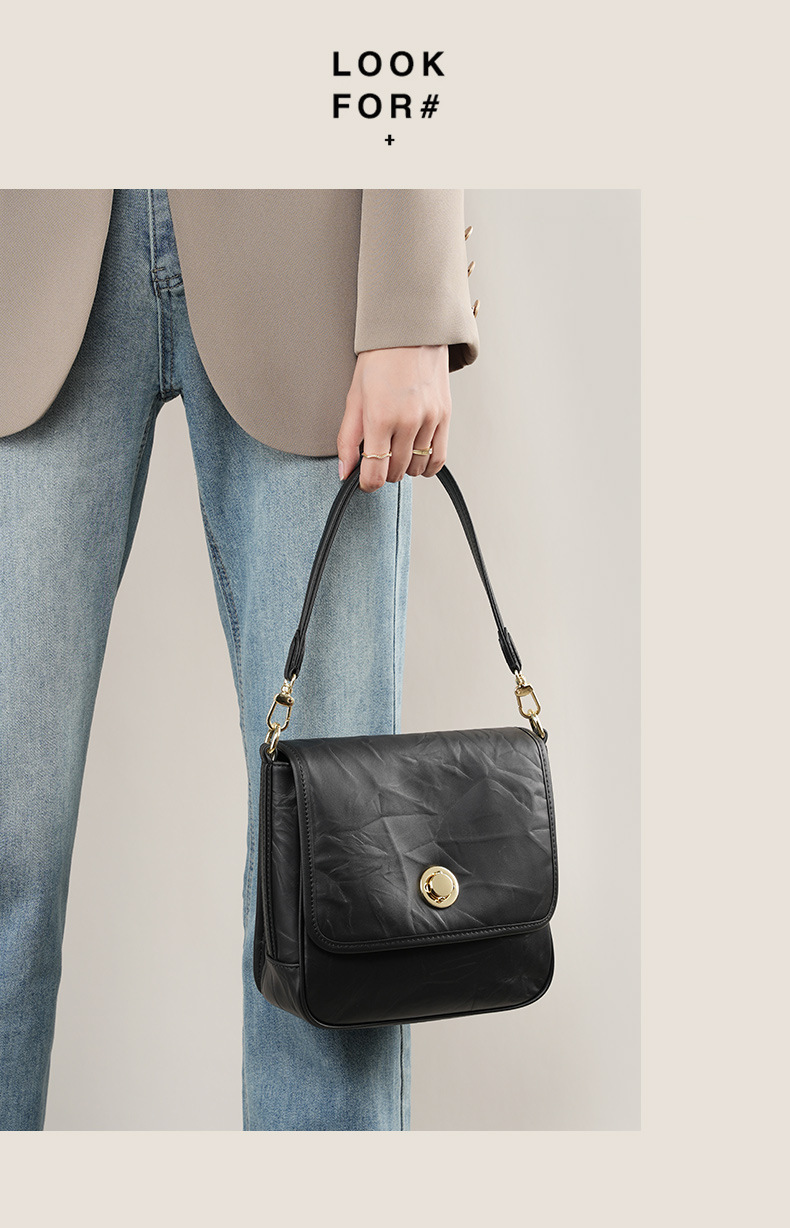 新款手抓纹牛皮腋下包,褶皱黑色复古托特包斜挎单肩包QSL-2332