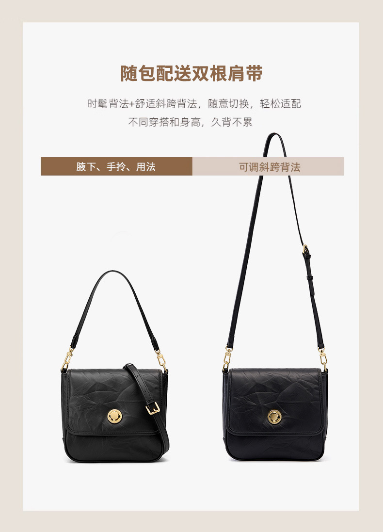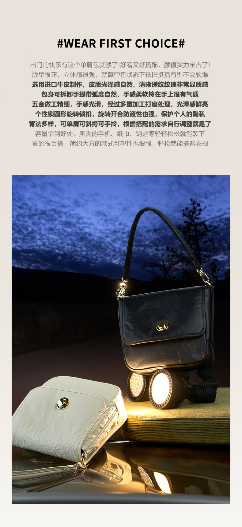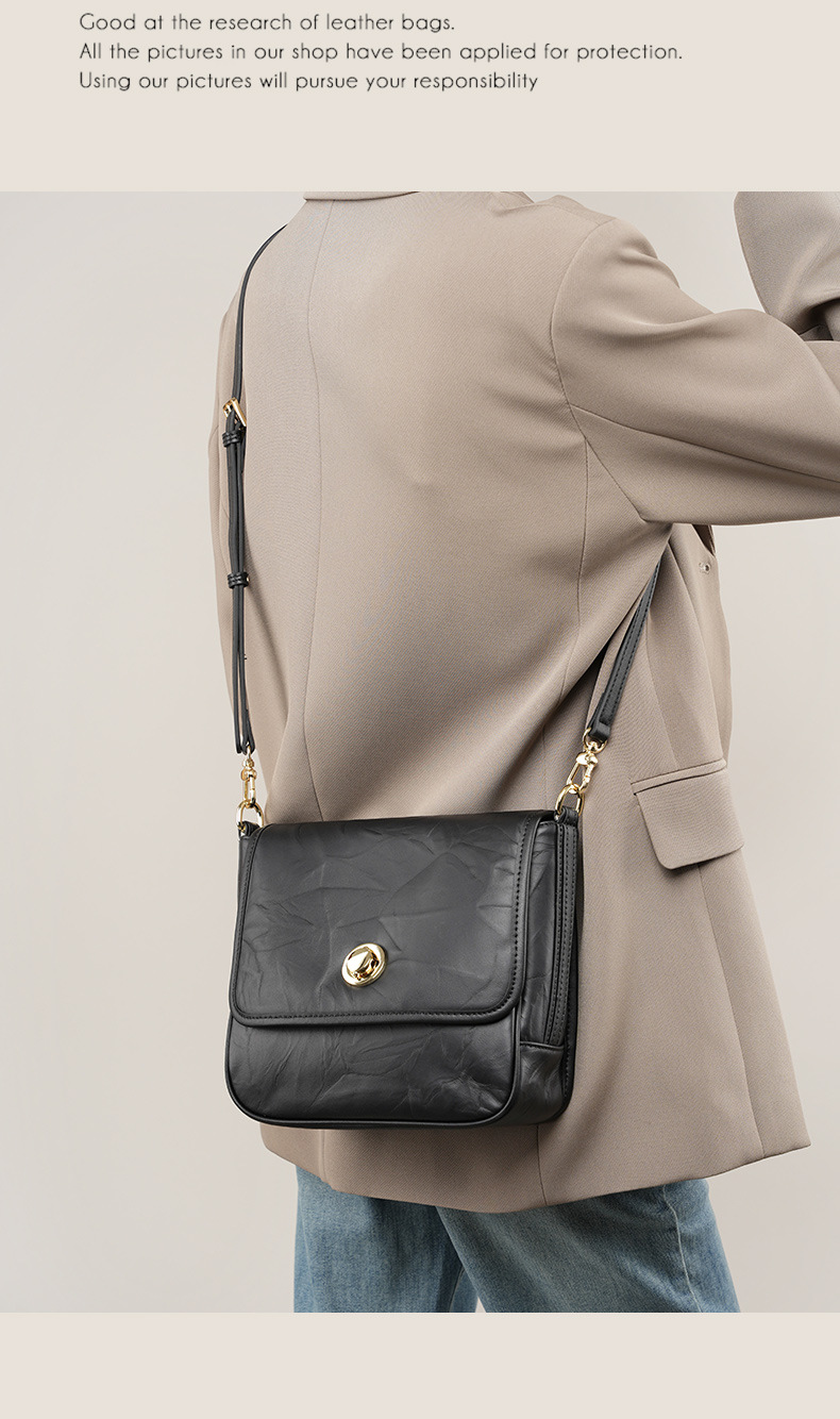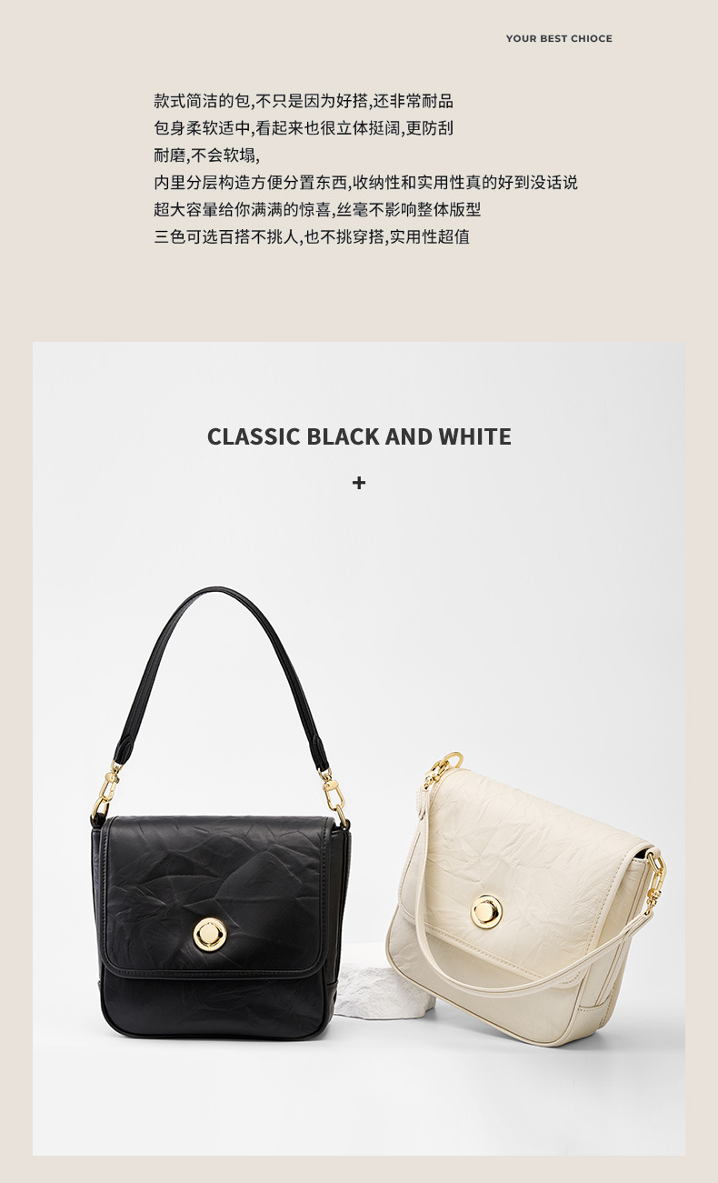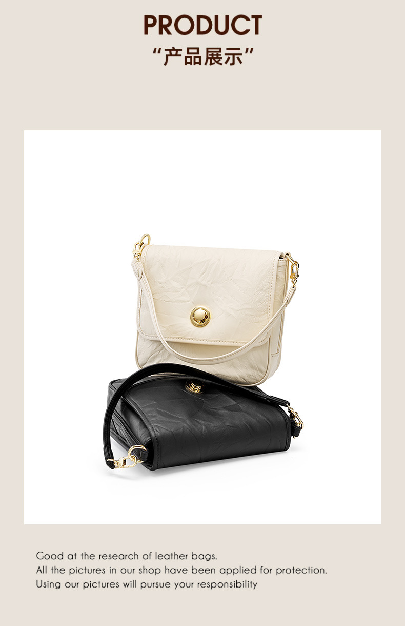 新款手抓纹牛皮腋下包,褶皱黑色复古托特包斜挎单肩包QSL-2332