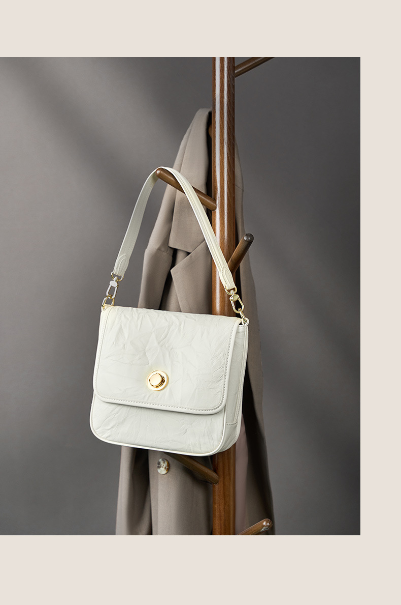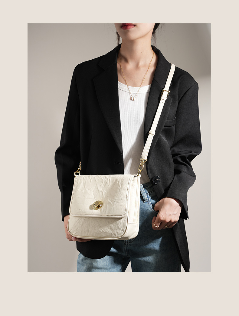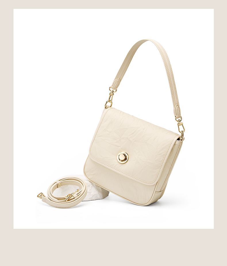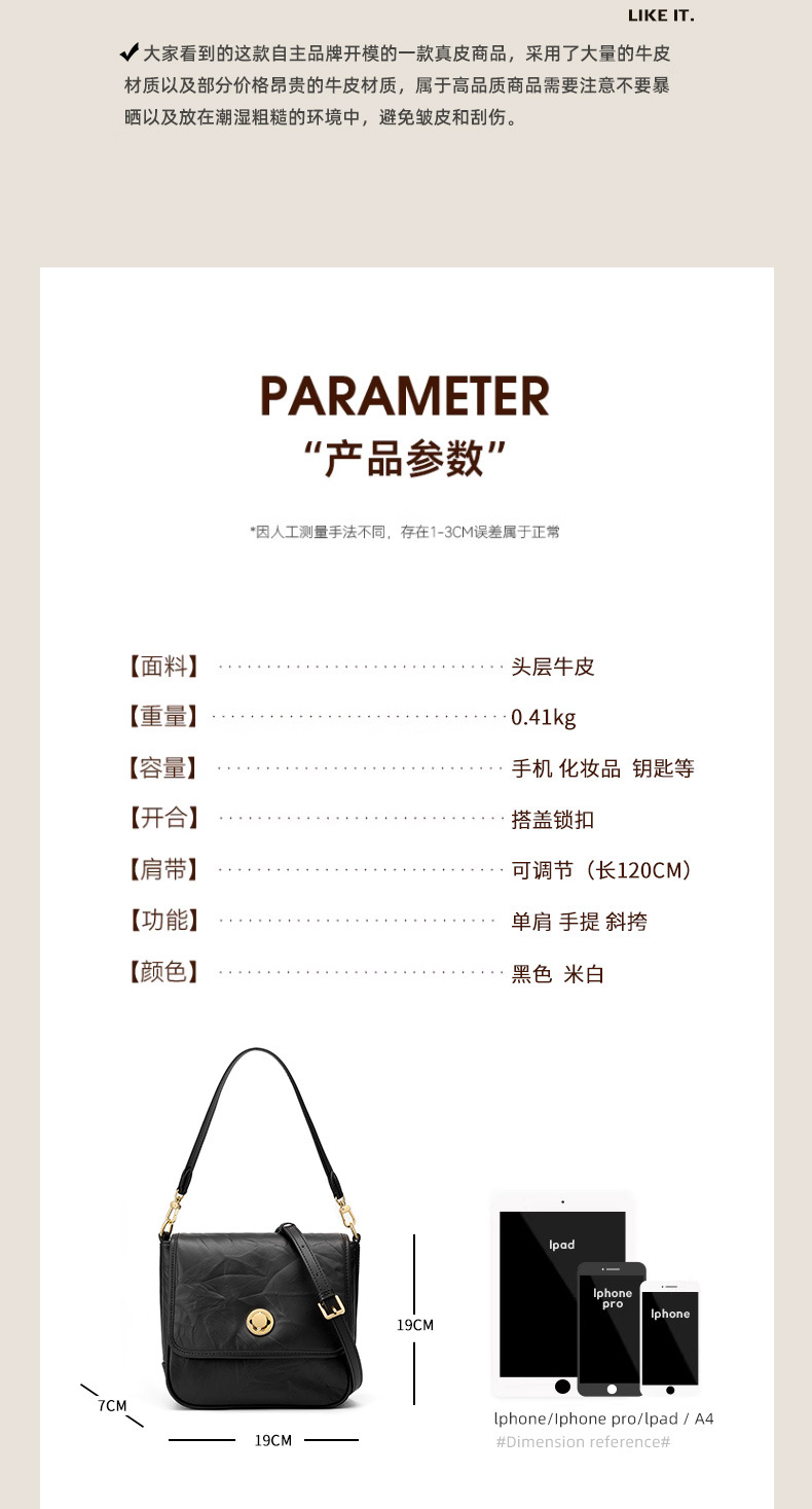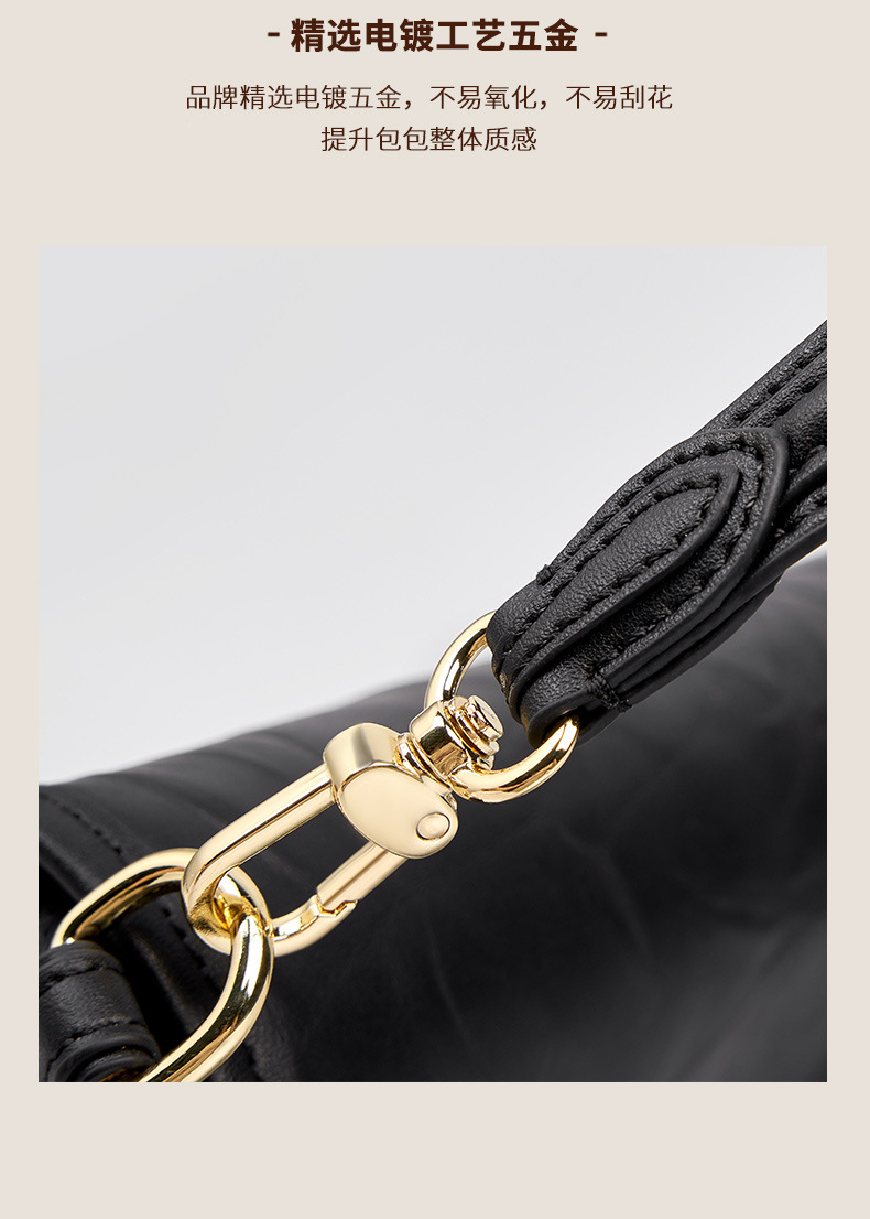 新款手抓纹牛皮腋下包,褶皱黑色复古托特包斜挎单肩包QSL-2332