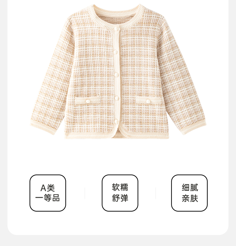 【高定系列】英氏儿童外套秋季开衫羊毛外套女童针织衫新款