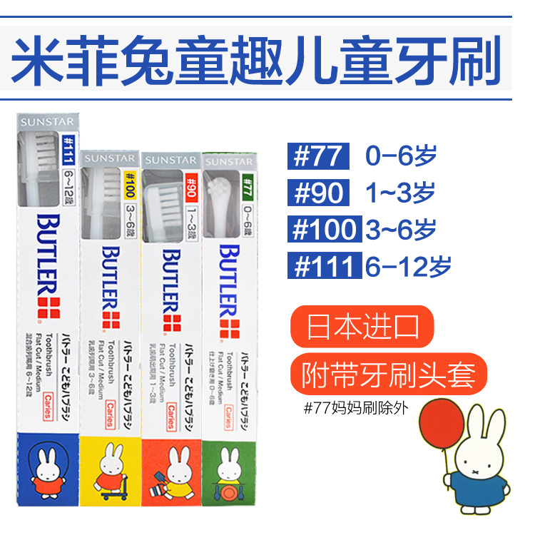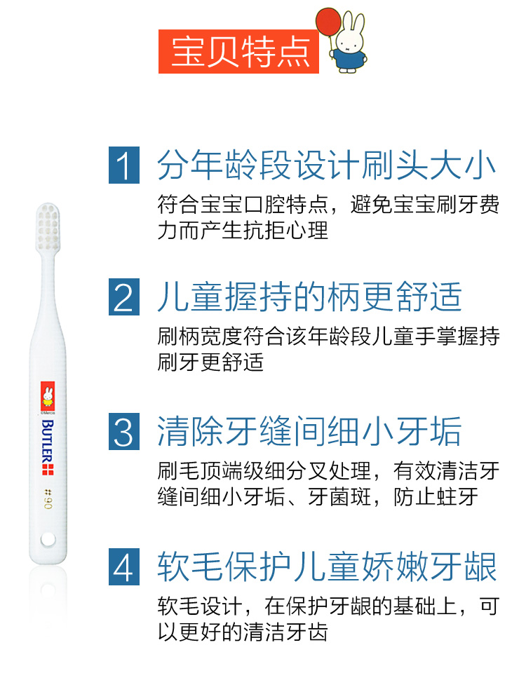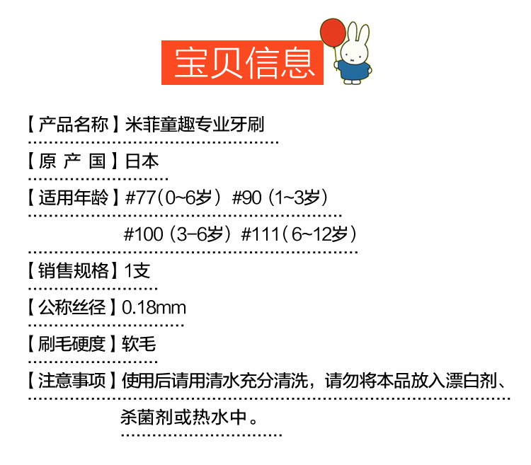 【品牌直发】包邮!日本进口拜德乐米菲兔童趣专业儿童牙刷0-12岁