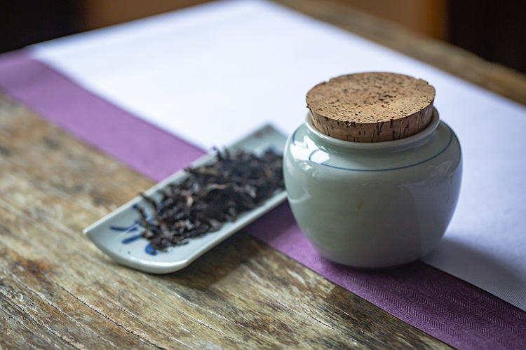 小巧质朴的茶叶罐中醒茶几日,待品茗时随取随用。