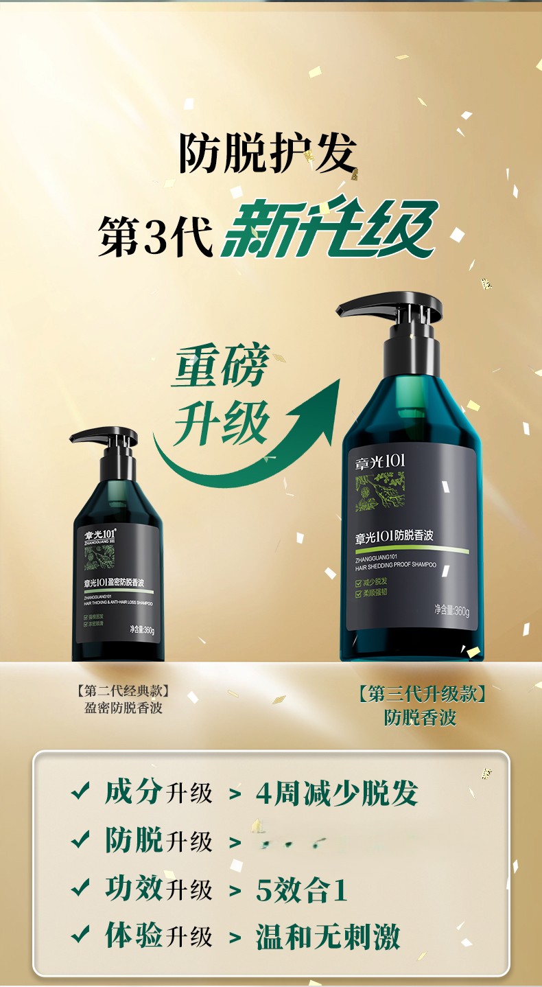 【53项专利 科学防脱50年 国妆特字】章光101防脱香波洗发水 360g/瓶(买2瓶装送8g*5袋旅行装!)