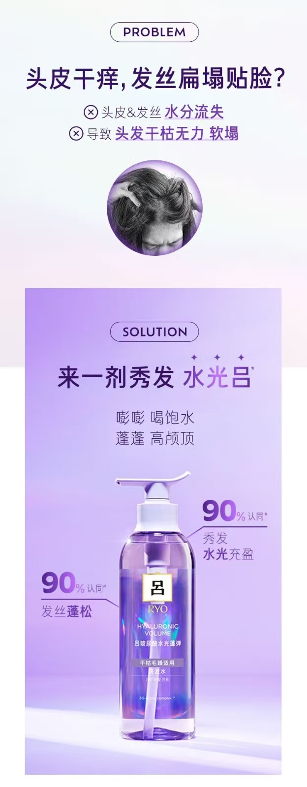 【国内专柜 门店直发】红吕(Ryo)绿吕 紫吕 蓝吕 玻尿酸水光吕洗发水清爽控油蓬松洗发露改善干枯毛躁补水清爽头皮400ml