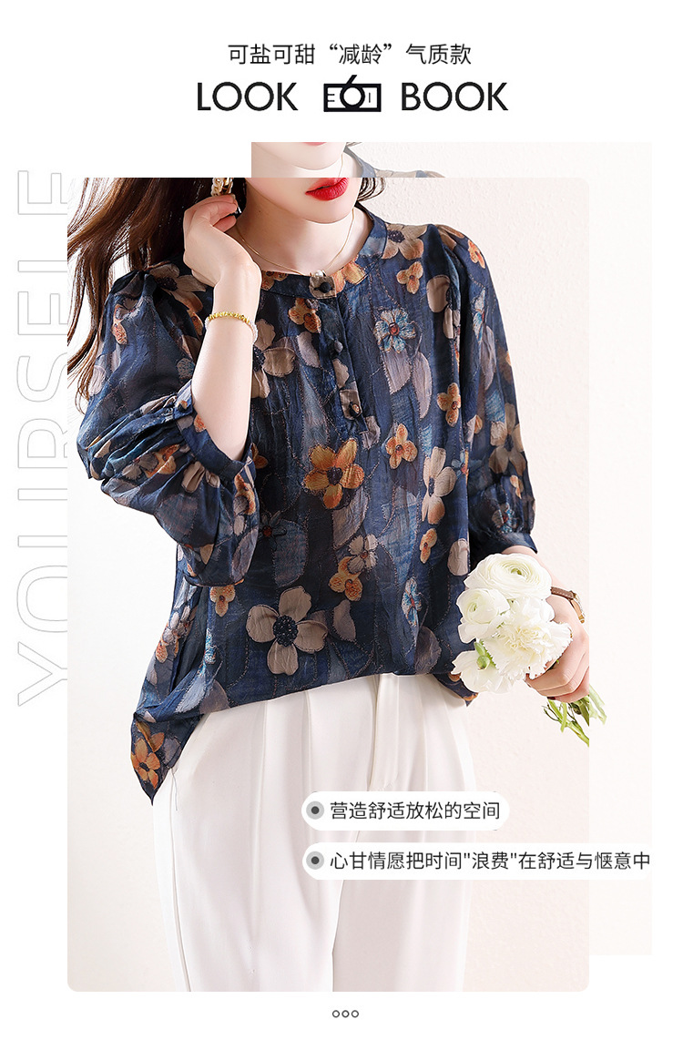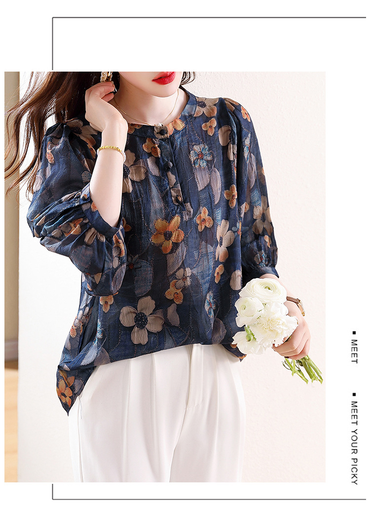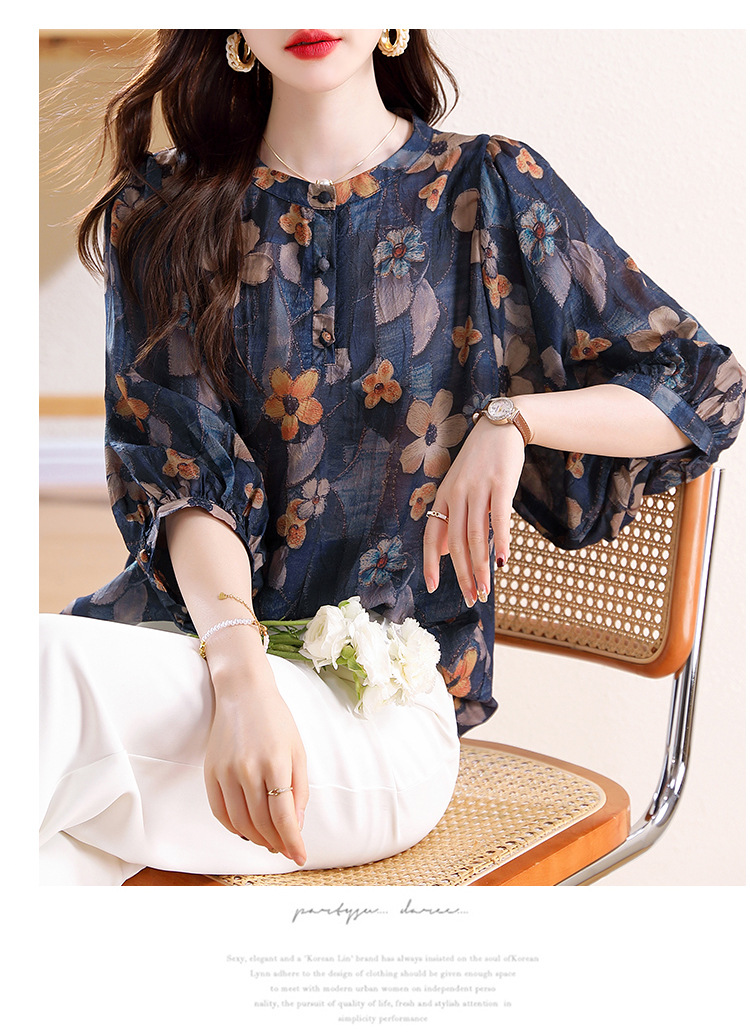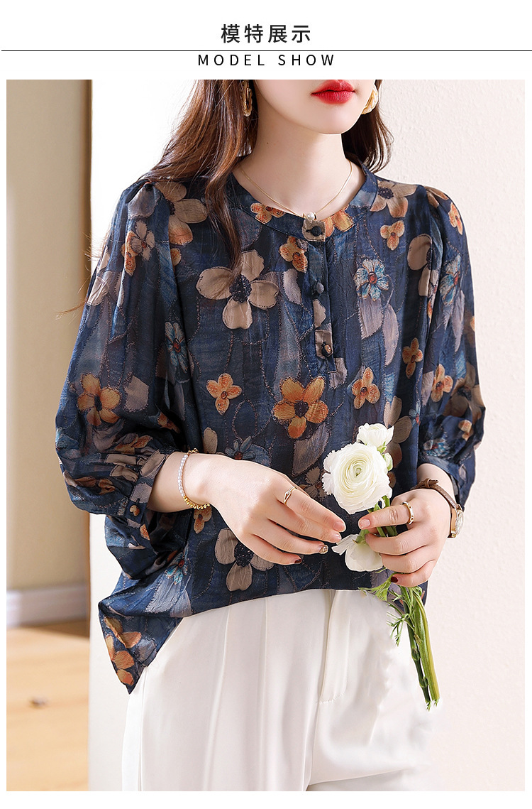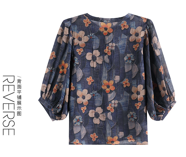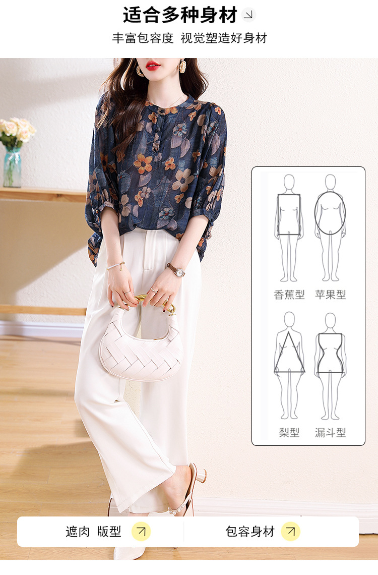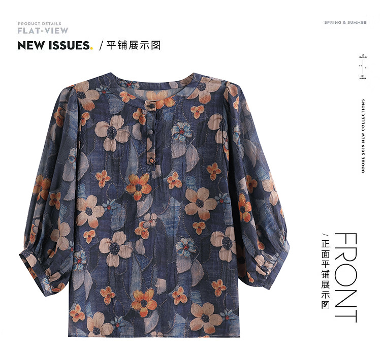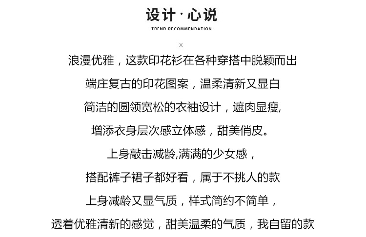 KQL C22N90314衬衫时尚印花雪纺衫宽松遮肉显瘦印花上衣