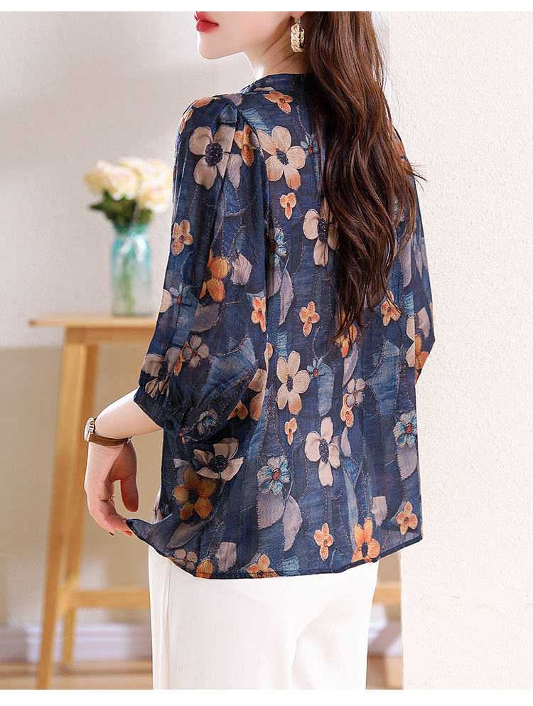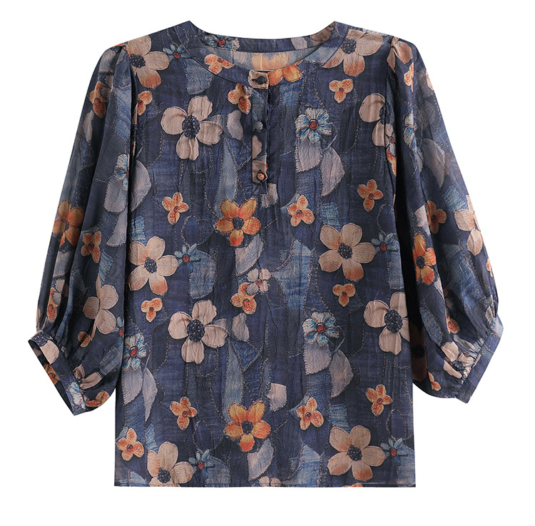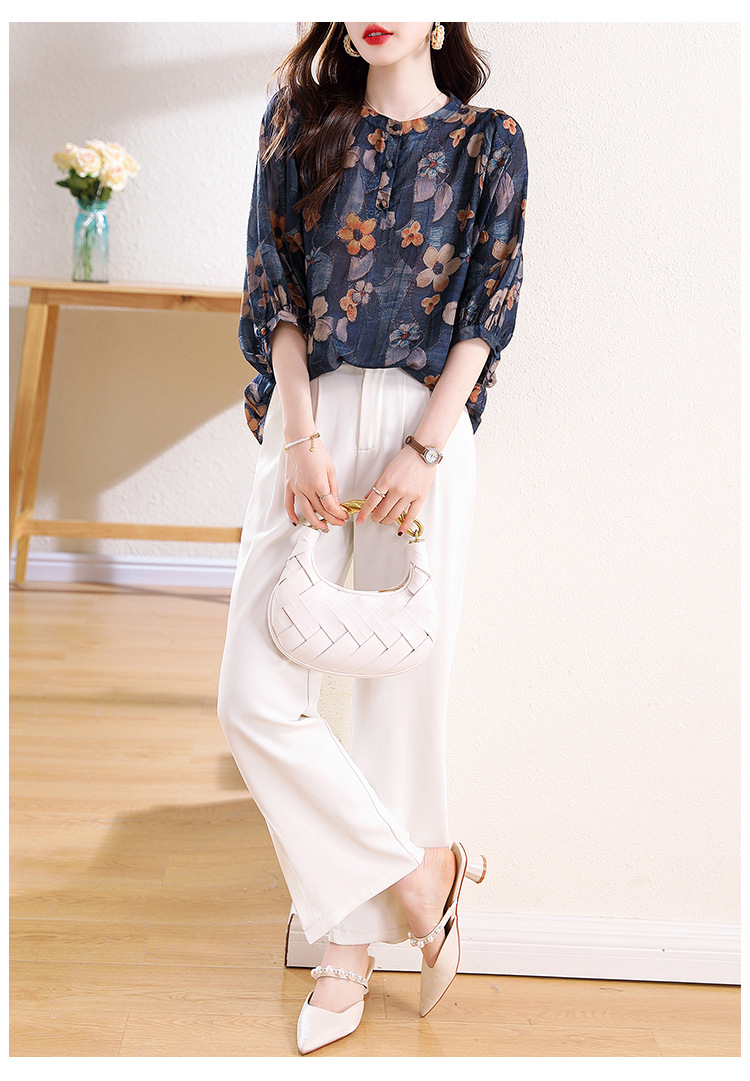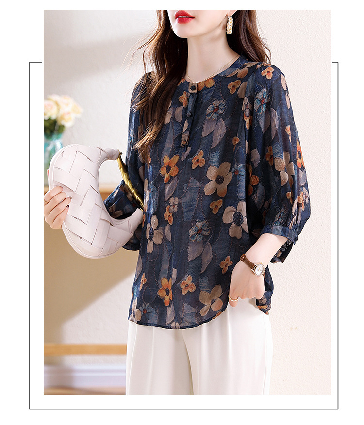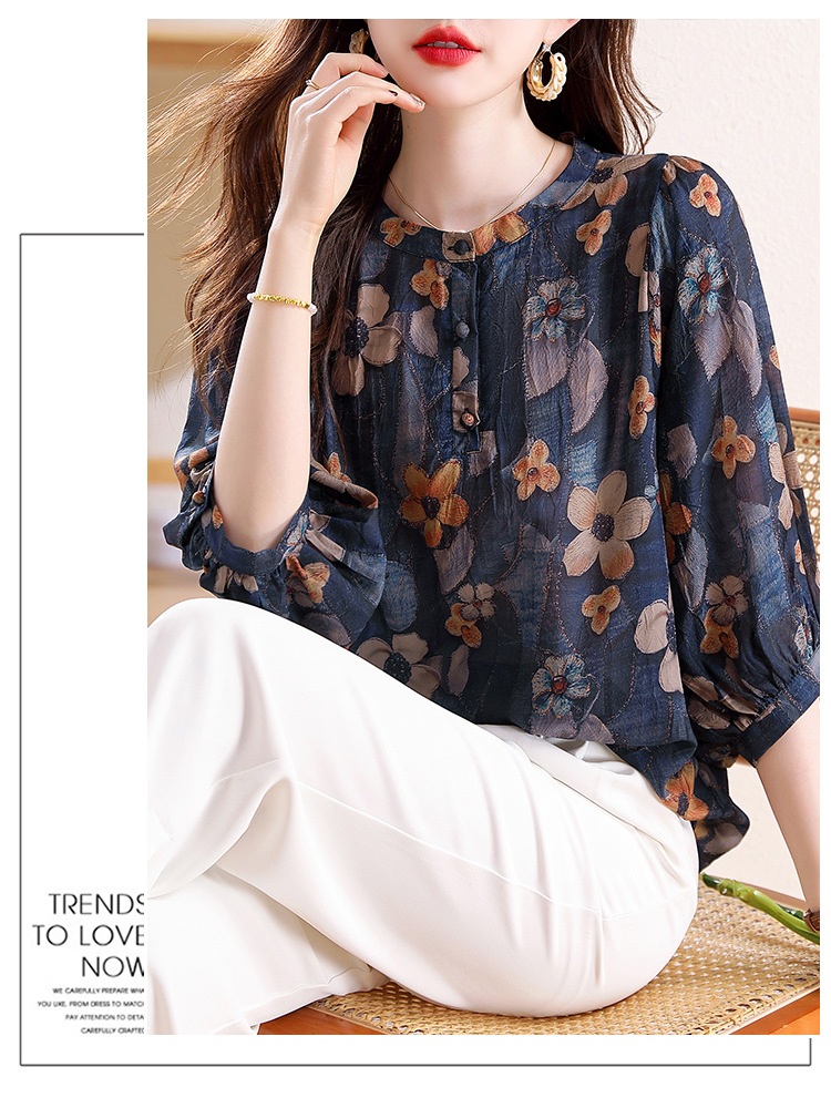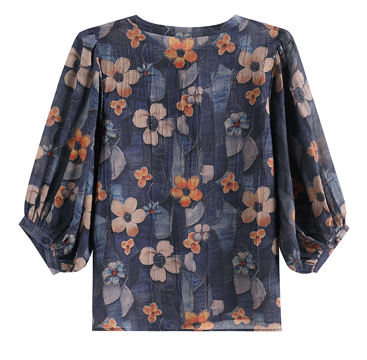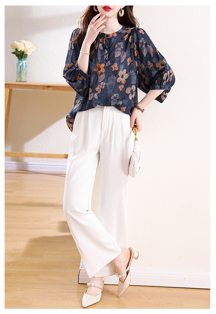 KQL C22N90314衬衫时尚印花雪纺衫宽松遮肉显瘦印花上衣