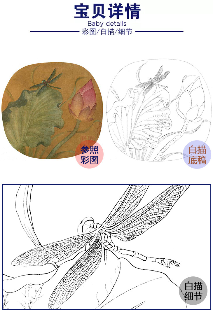 宋画花鸟小品白描底稿-佚名《荷花蜻蜓图》-多种白描尺寸可选-GH69