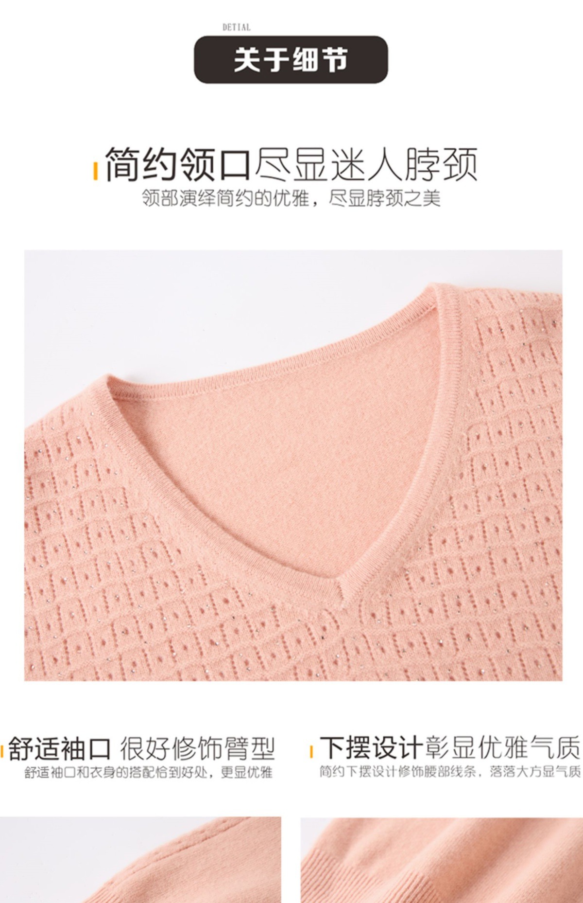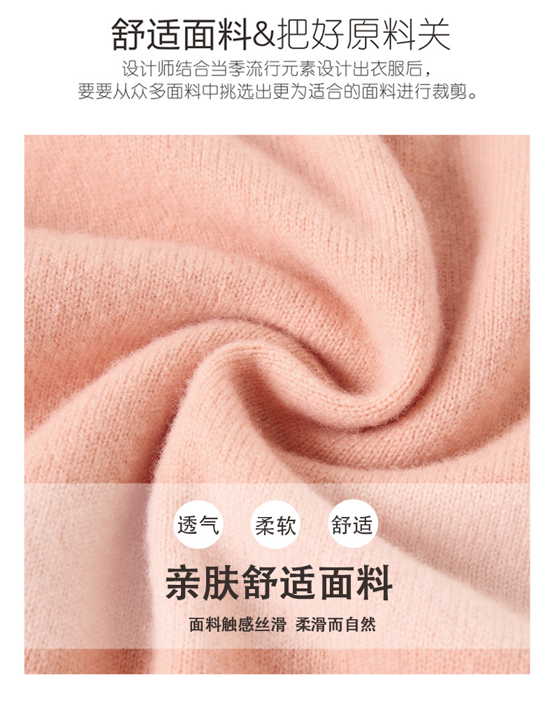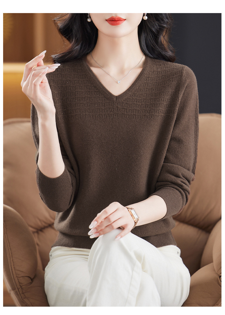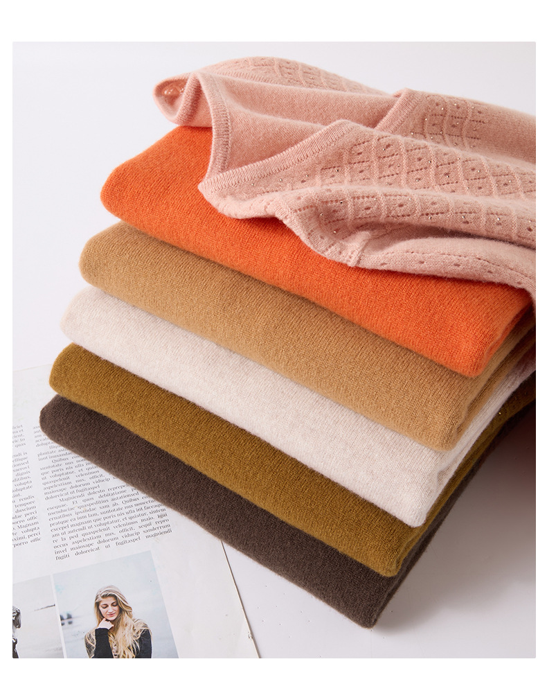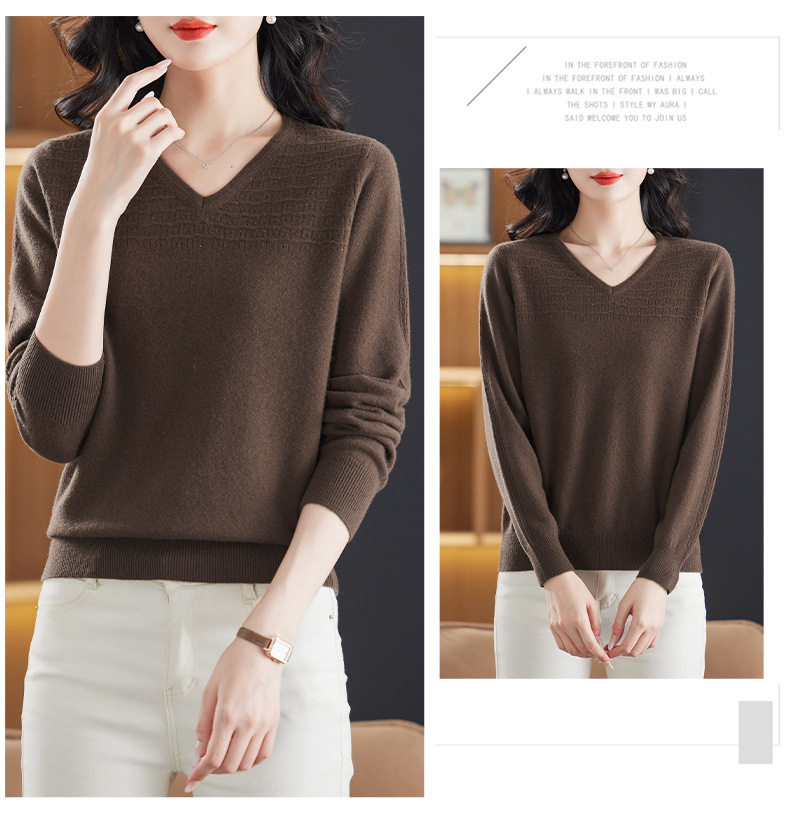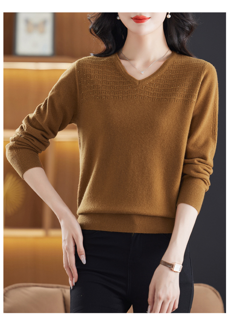 CC-13-6911时尚纯羊毛衫女秋季V领镂空软糯针织打底衫圆领宽松毛衣女