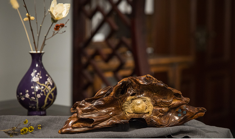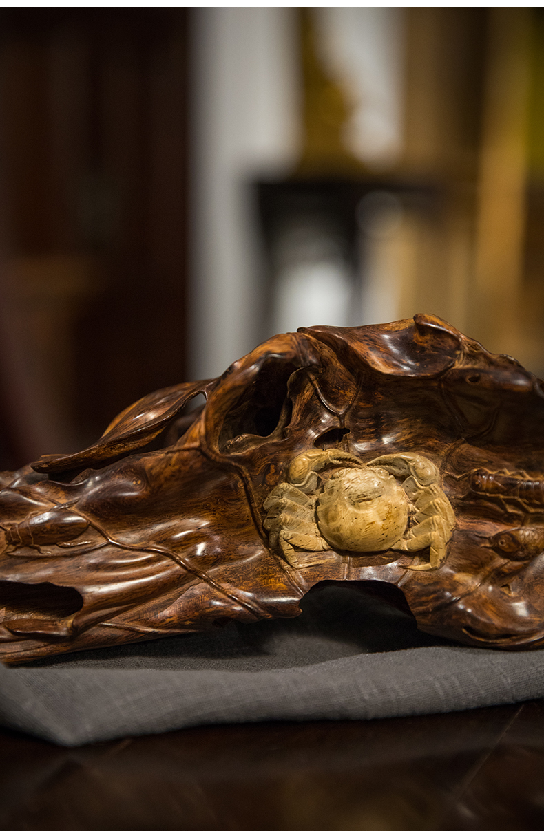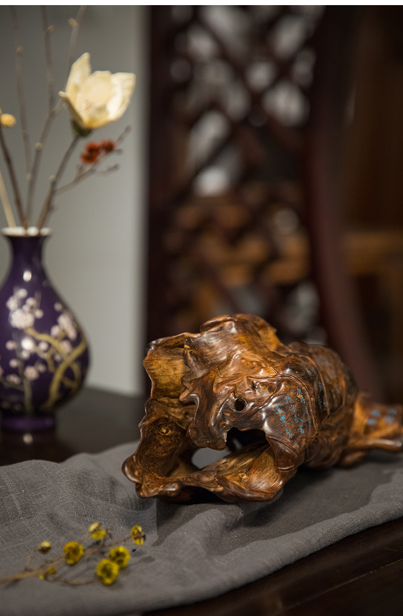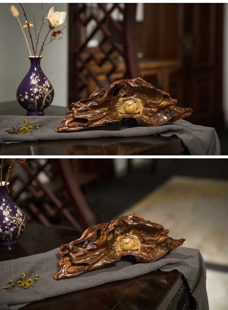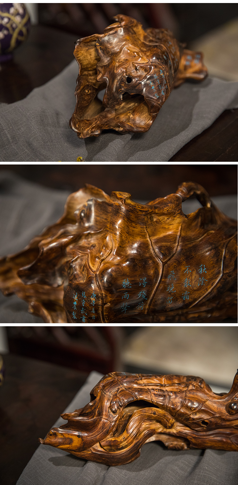 清 青金石嵌绿松石莲花盖盒(红木座)