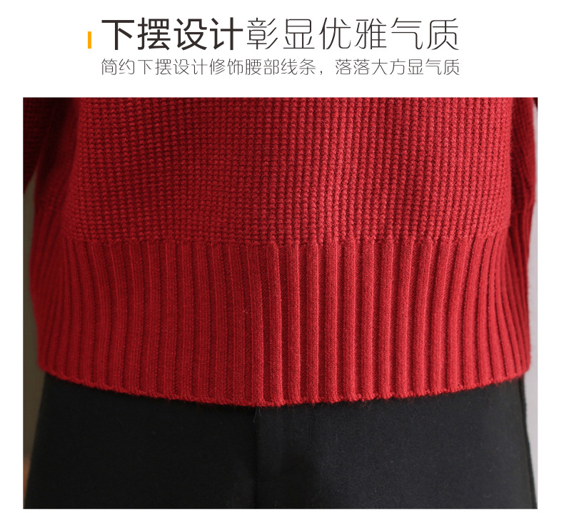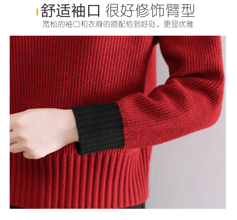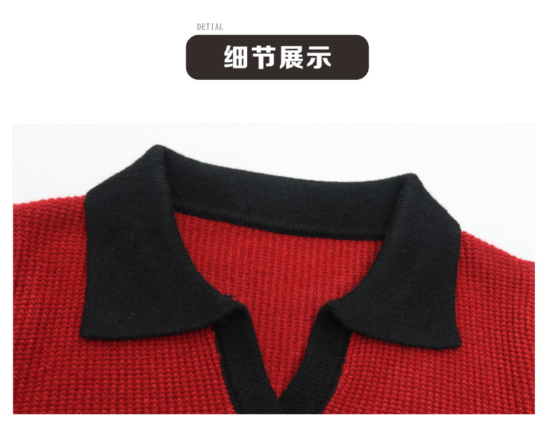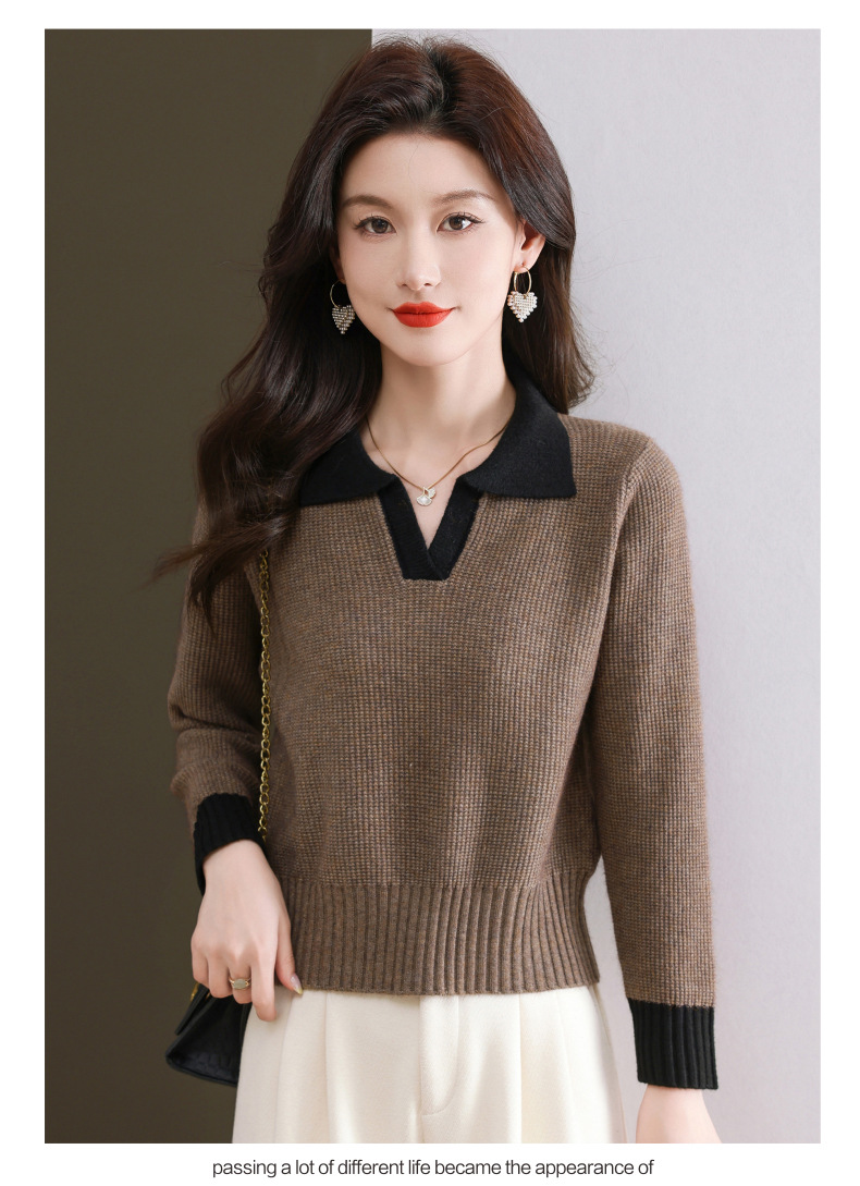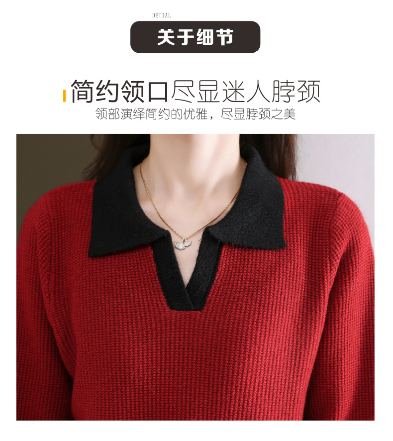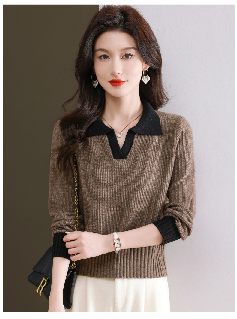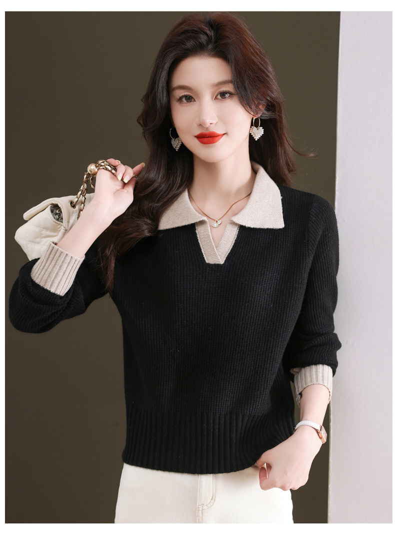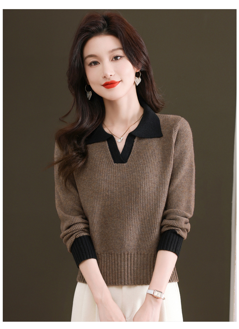 CC-103-6126春秋新款撞色polo领长袖针织衫女宽松显瘦翻领打底衫内搭上衣