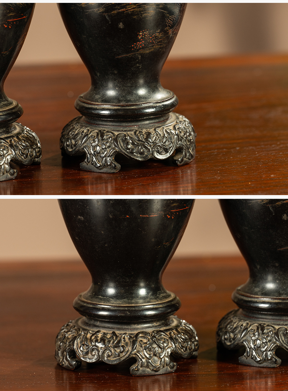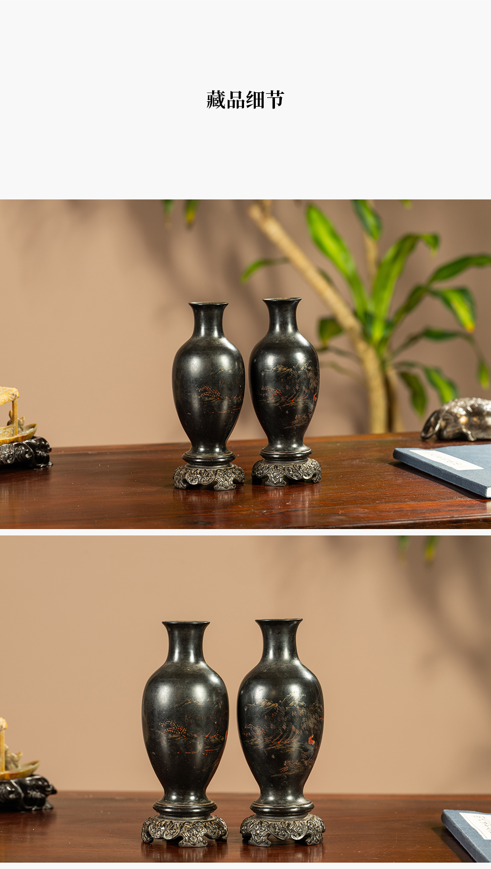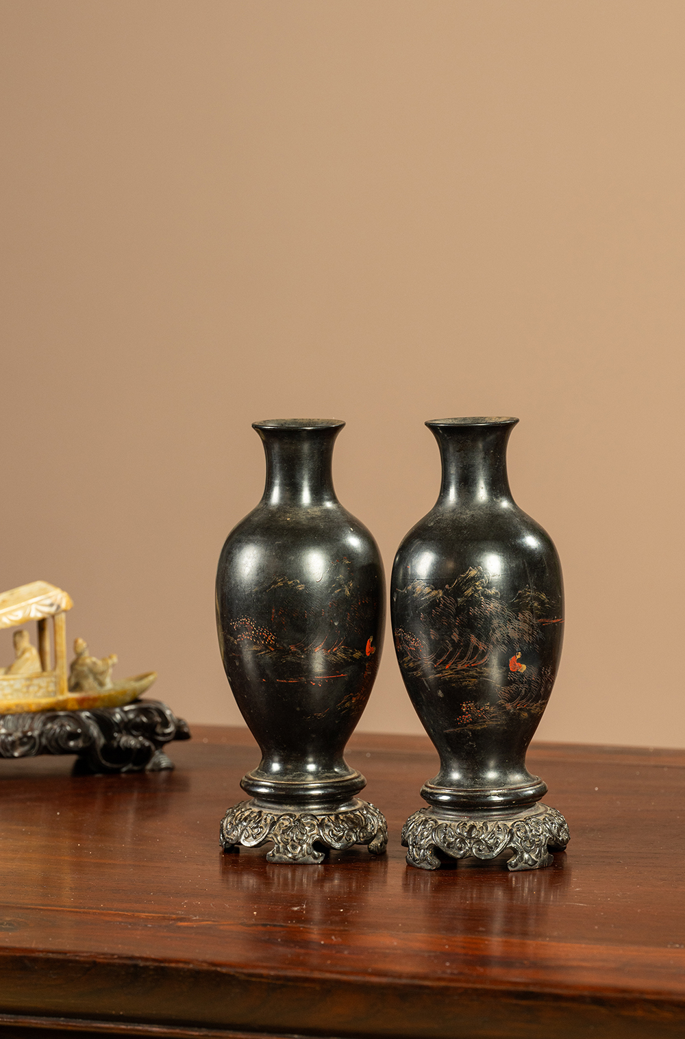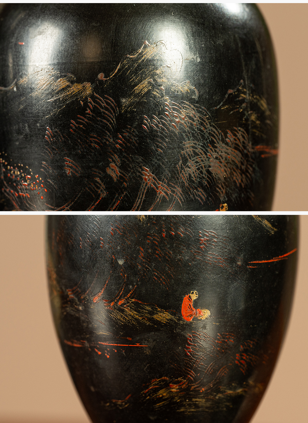 清 匏器髹漆彩绘山水人物赏瓶(一对)