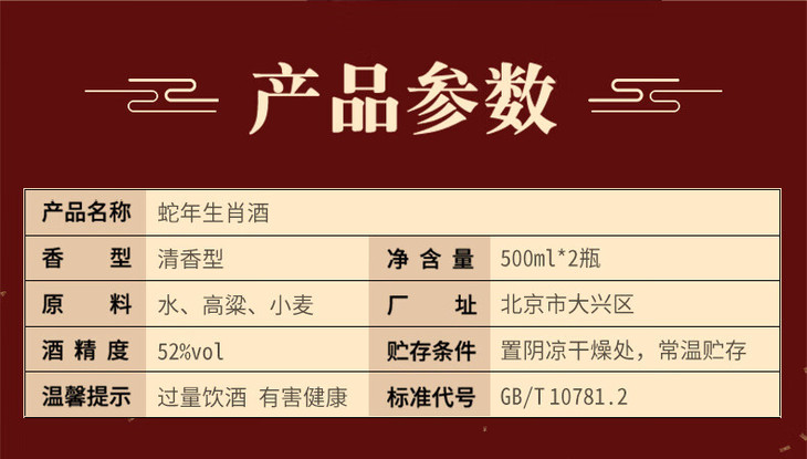 【年货节】【稀缺资源】 京都 蛇年生肖酒 52度 清香型 500ml*2 礼盒