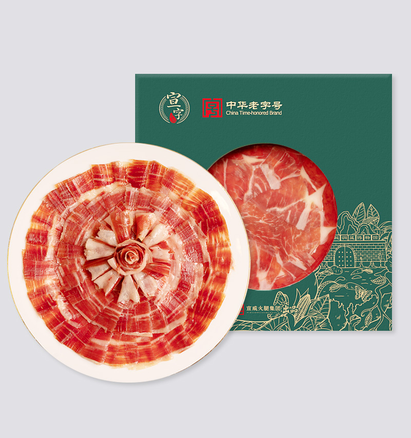 ●在火腿的众多吃法中,对火腿品质要求严苛的吃法便是生吃,一盘生吃火腿在大餐厅里能卖到几百甚至上千元。殊不知发酵36个月的“宣字洞藏火腿”也可以生吃,是可以和西班牙火腿相媲美的存在