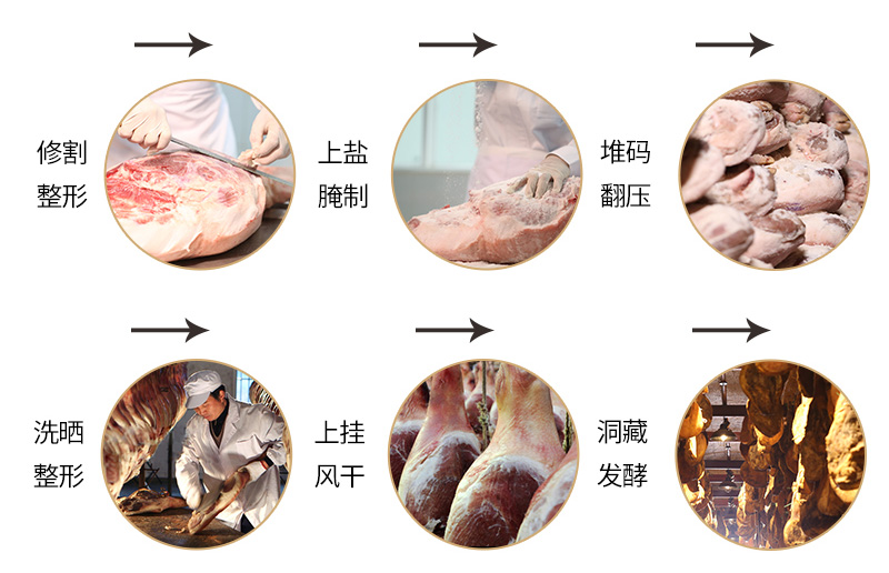 300年制腿工艺,制腿师傅沿用传统方法,保证腌制出来的火腿颜色醇正,肉质清香味美,充满浓浓的宣威特色火腿香