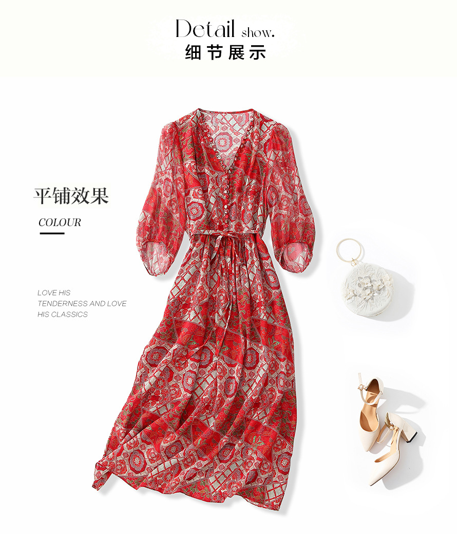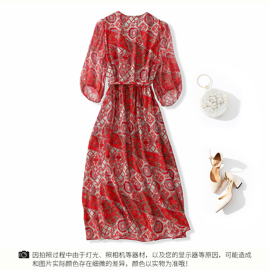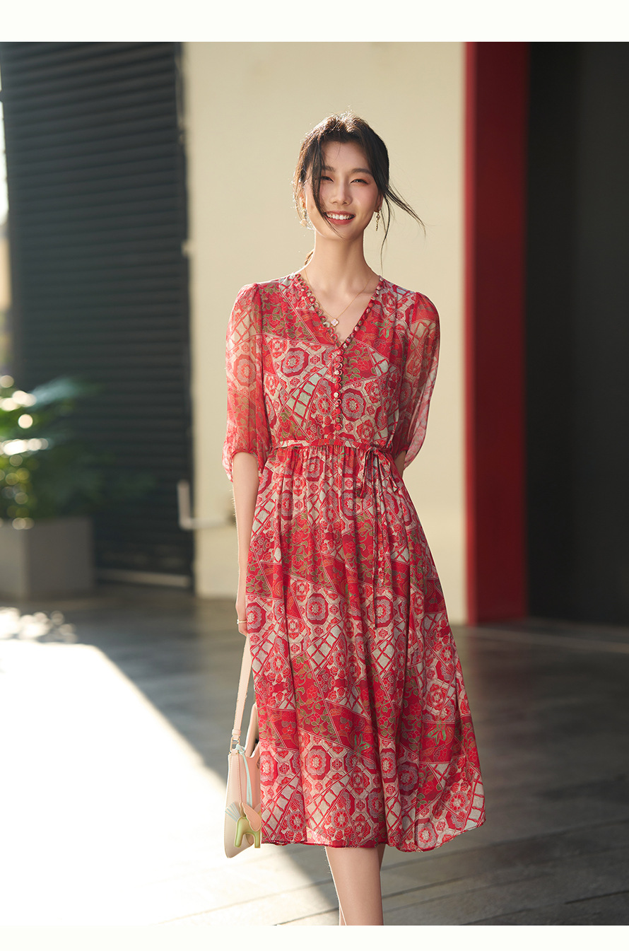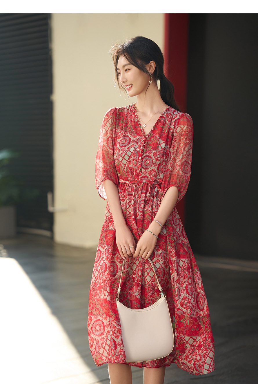丁摩 本命年红色战袍 真丝连衣裙女夏100%桑蚕丝气质显瘦中长裙子6ZF-80162
