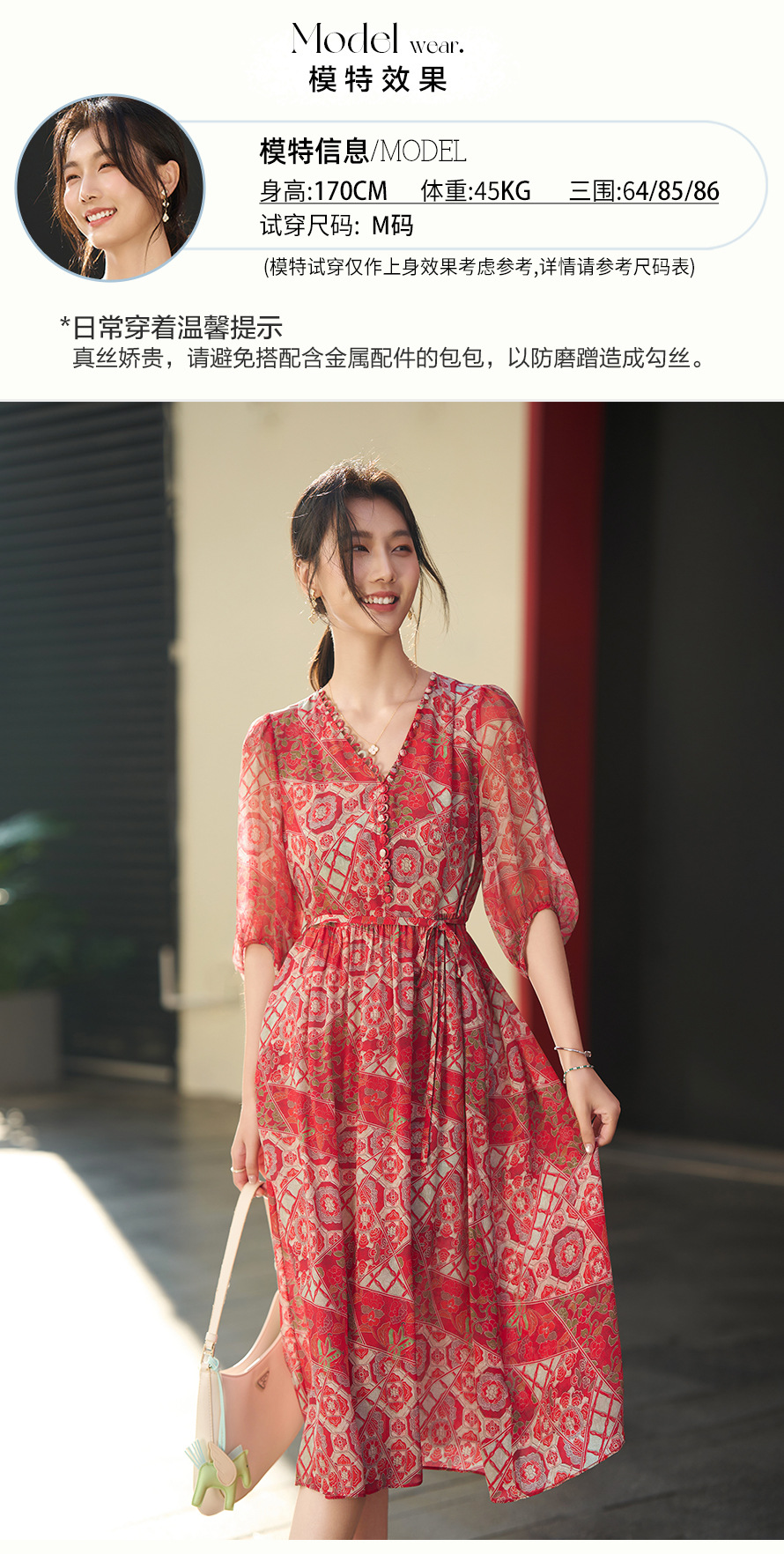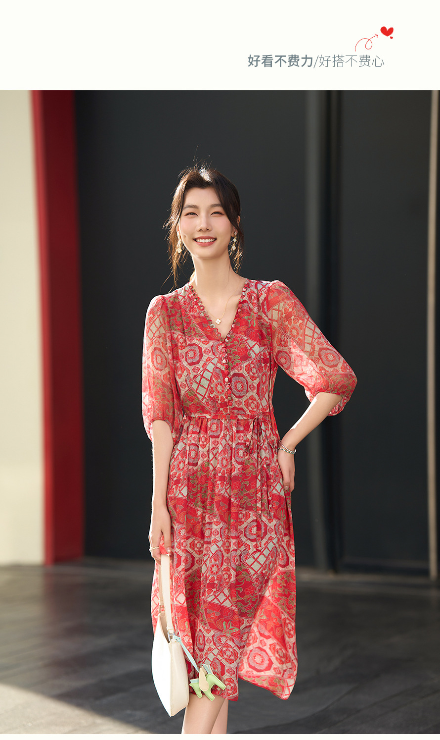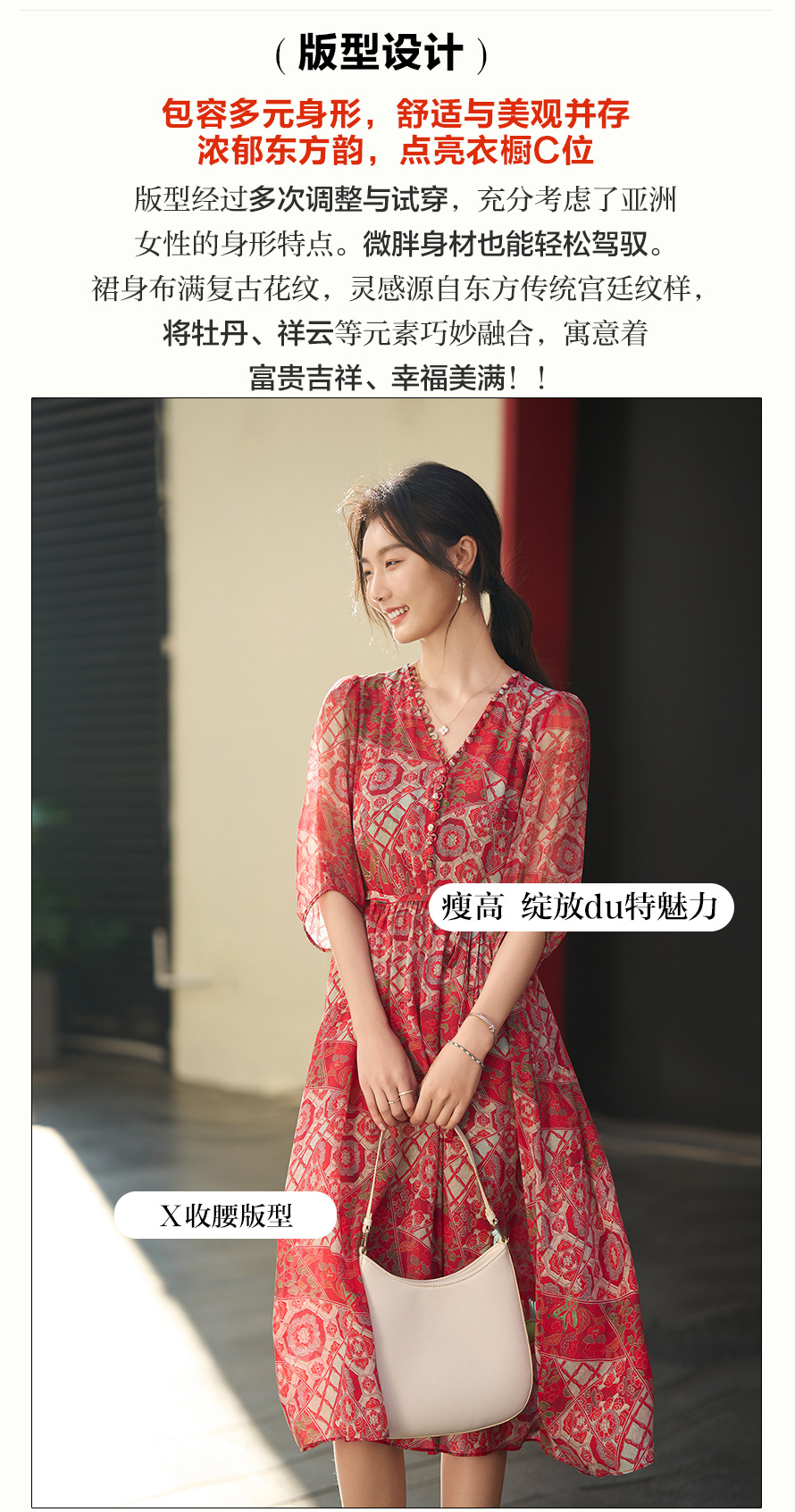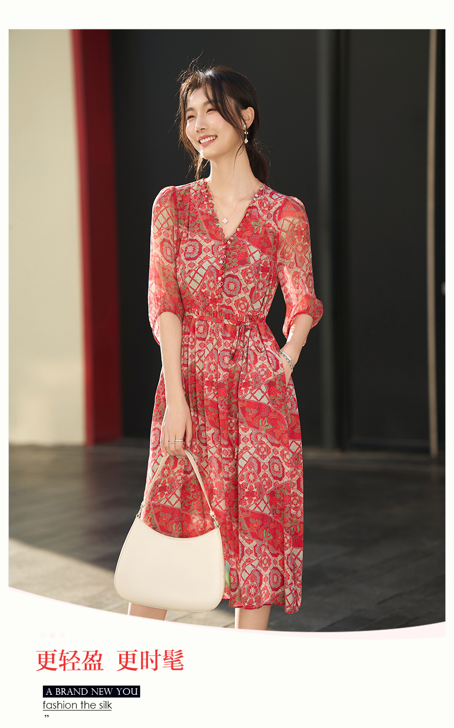 丁摩 本命年红色战袍 真丝连衣裙女夏100%桑蚕丝气质显瘦中长裙子6ZF-80162