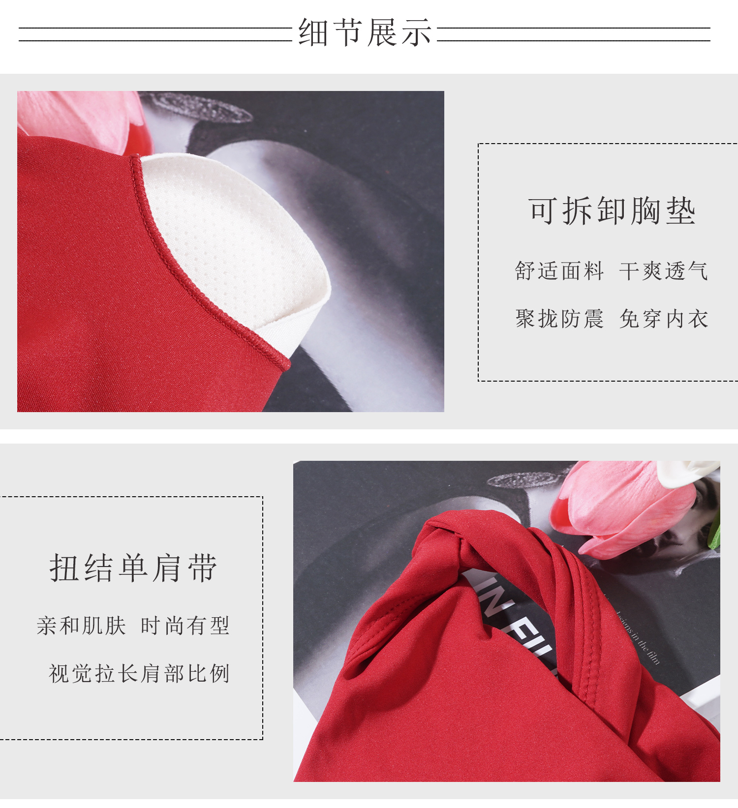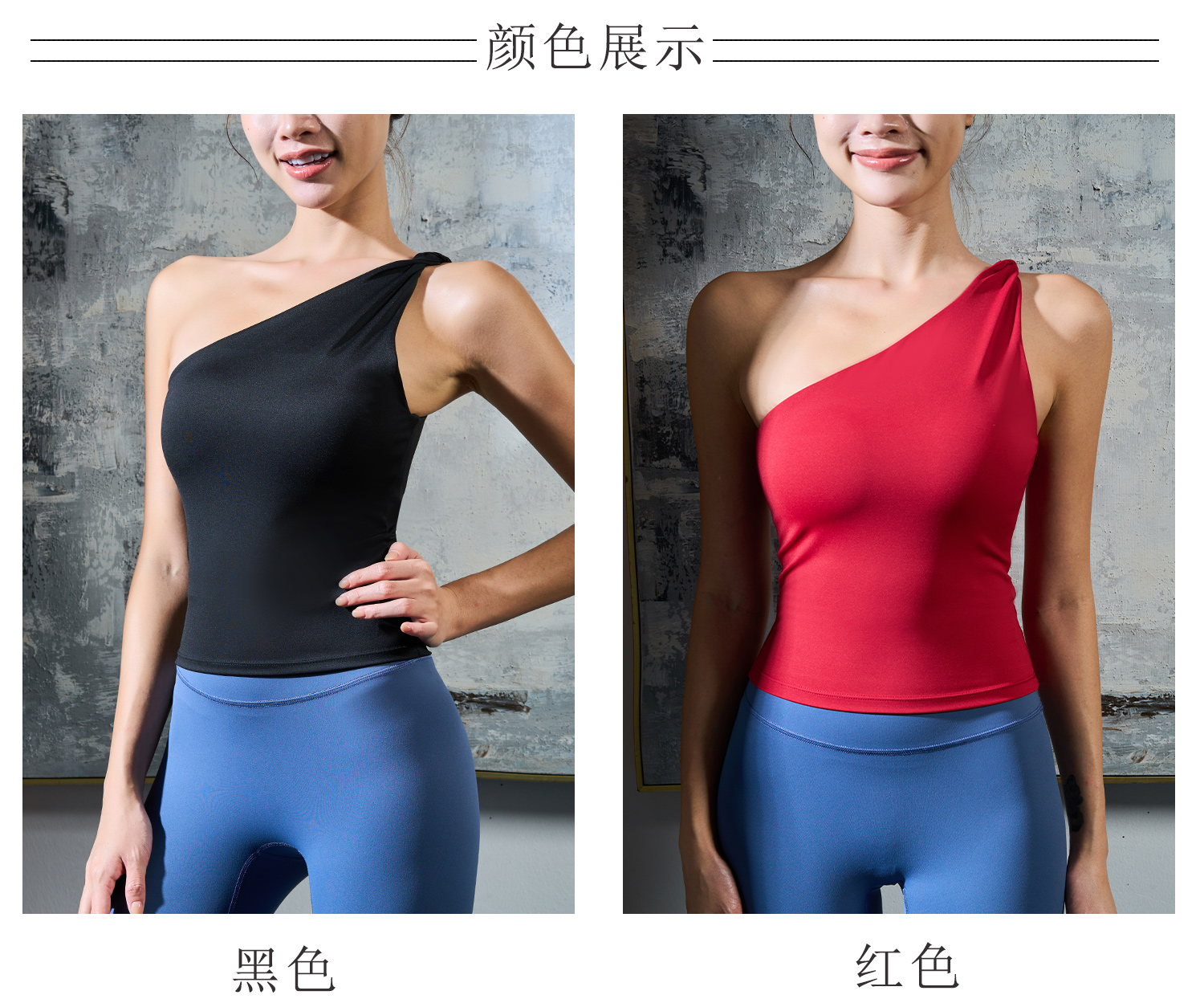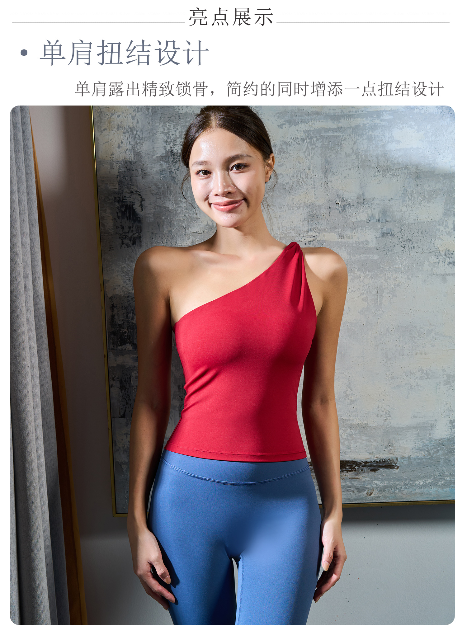 【126元任选2件】跃牌【漫西】系列 性感斜肩瑜伽背心运动健身瑜伽服套装带可拆卸胸垫