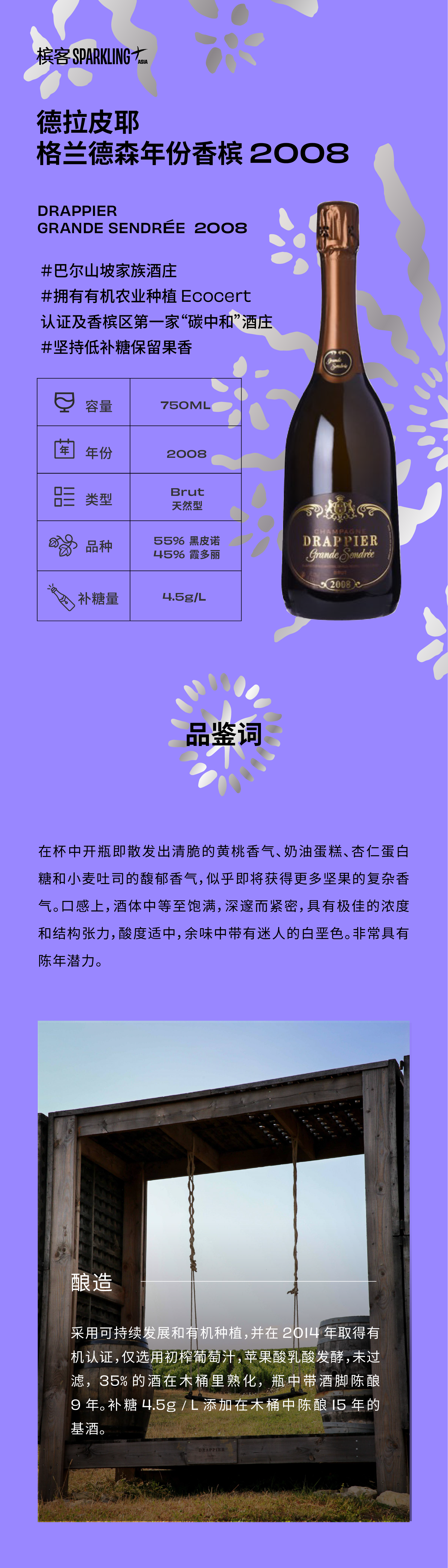 Drappier Grande Sendrée Millésime Brut 2008 德拉皮耶格兰德森年份香槟 2008