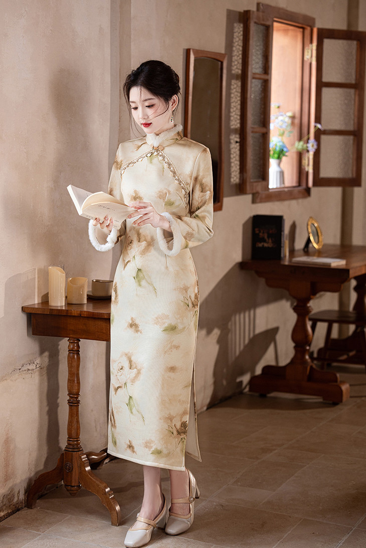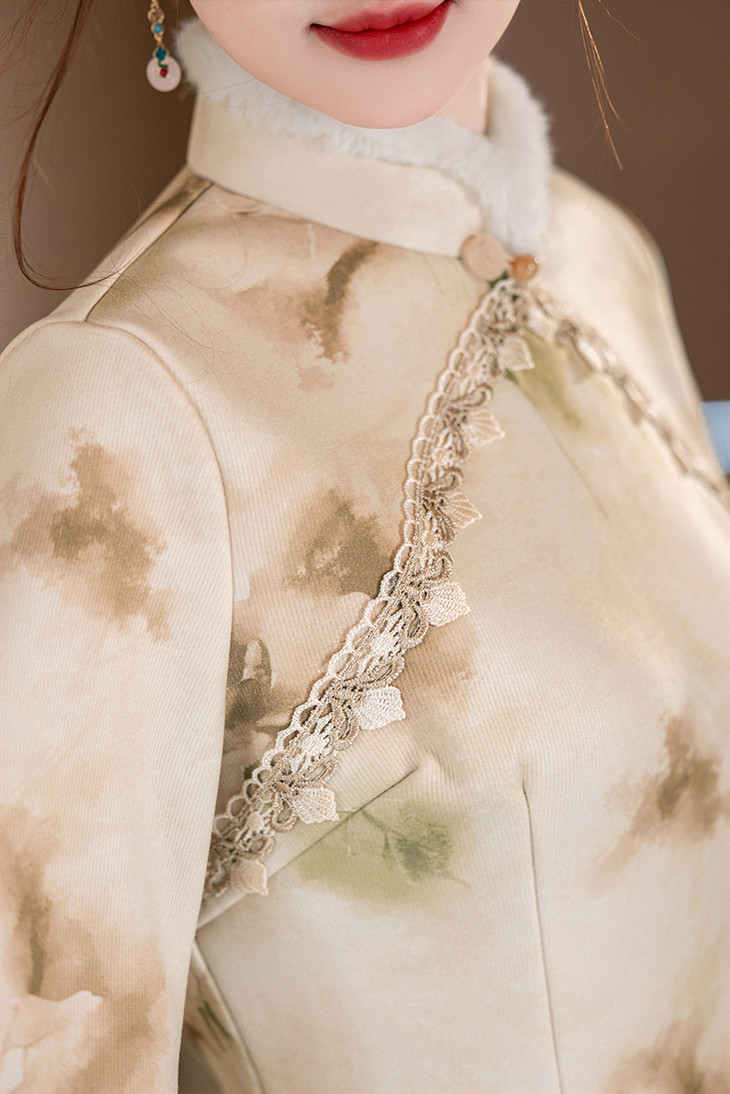 2024年冬季新款改良旗袍日常年轻款修身加绒可爱国风旗袍XL1171 商品图4