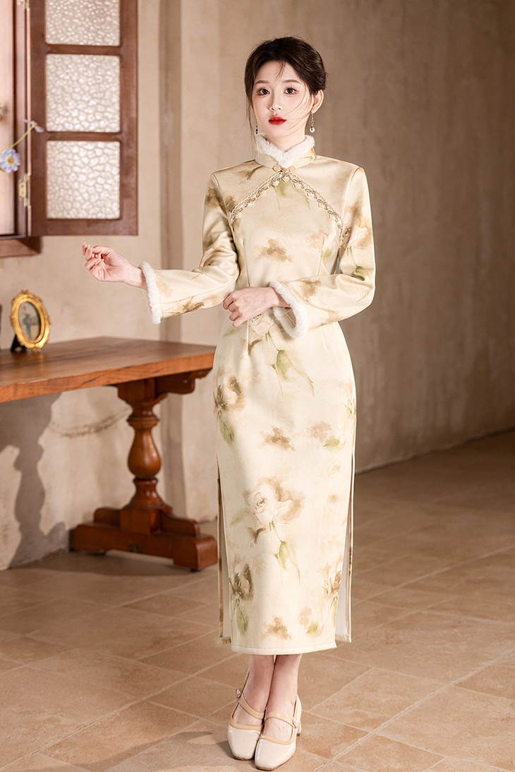 2024年冬季新款改良旗袍日常年轻款修身加绒可爱国风旗袍XL1171 商品图1